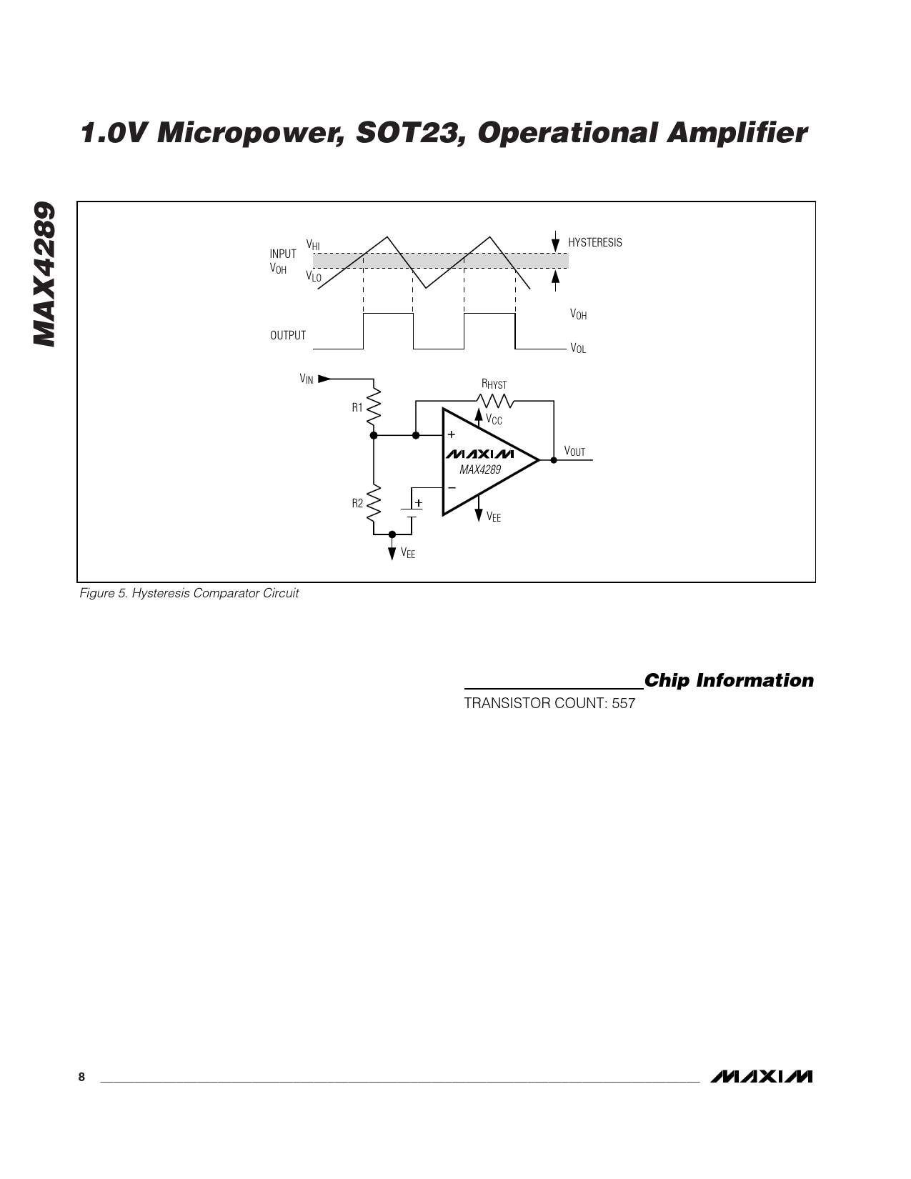 | 页数 / 页 | 9 / 8 — 1.0V Micropower, SOT23, Operational Amplifier. MAX4289. Chip Information |