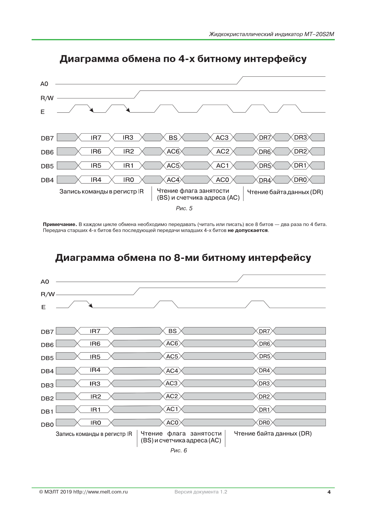 | 页数 / 页 | 12 / 4 — Диаграмма обмена по 4х битному интерфейсу. Примечание. не допускается. … |