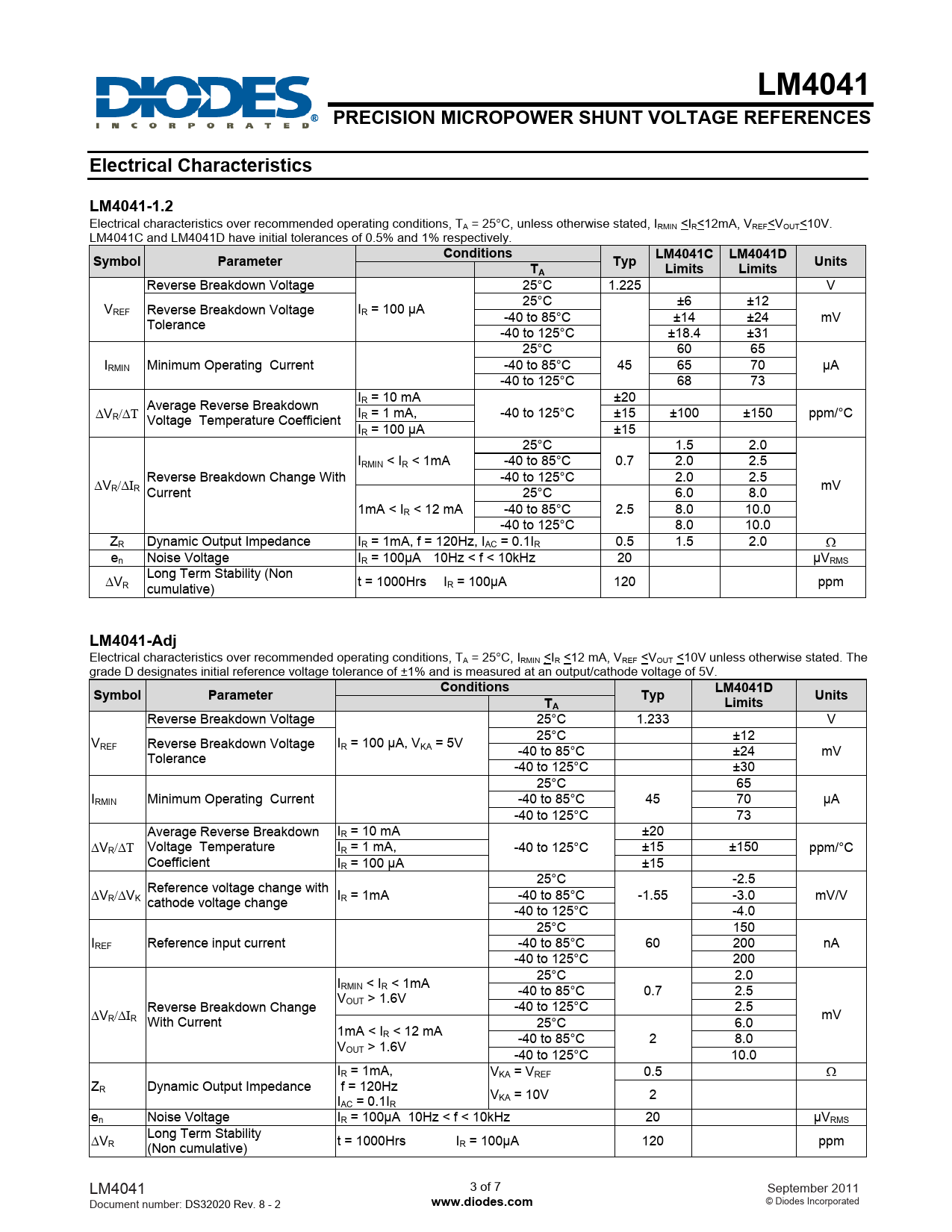| 页数 / 页 | 7 / 3 — LM4041. PRECISION MICROPOWER SHUNT VOLTAGE REFERENCES. Electrical … |