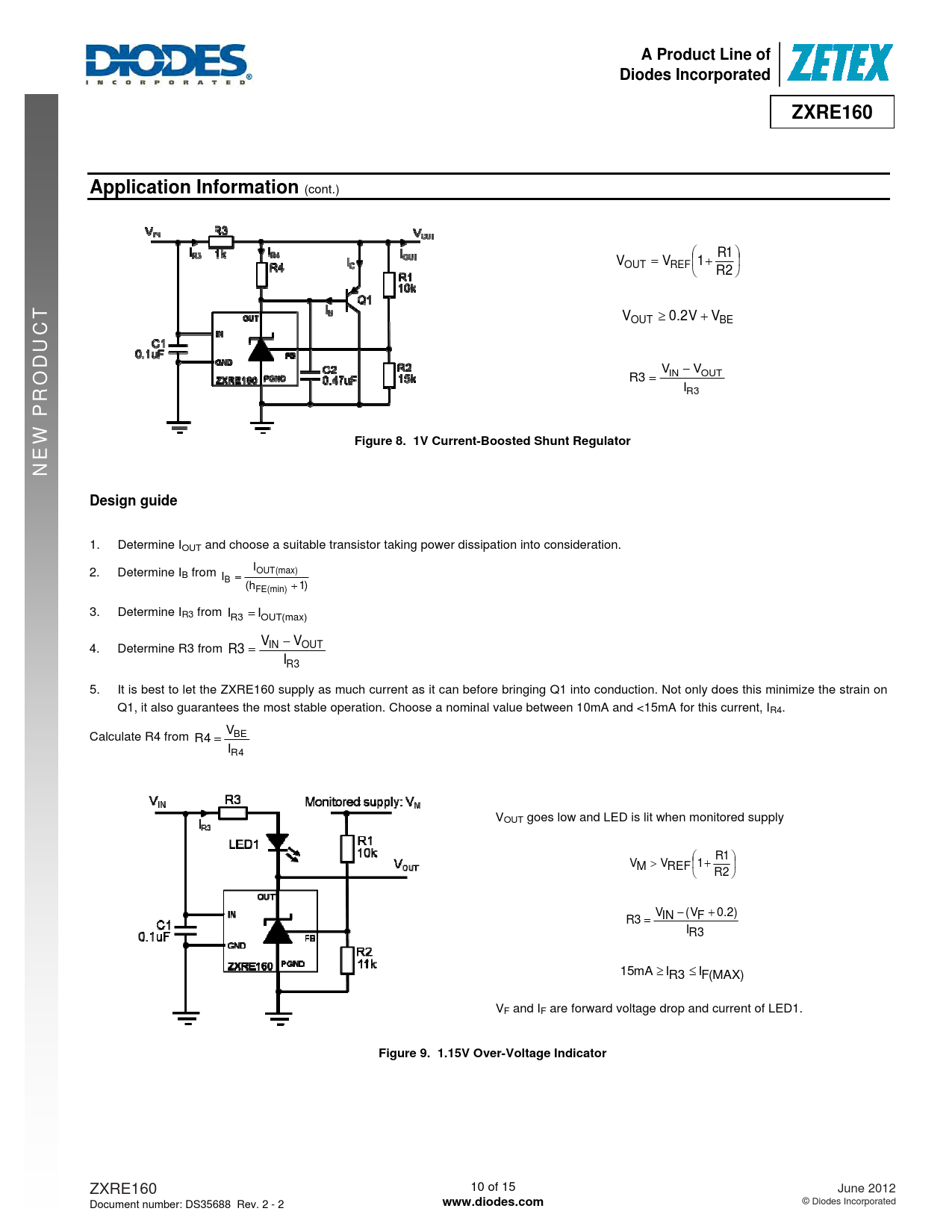 A Product Line of. Diodes Incorporated. ZXRE160. Application Information. Figure 8. 1V Current-Boosted Shunt Regulator. NEW PROD
