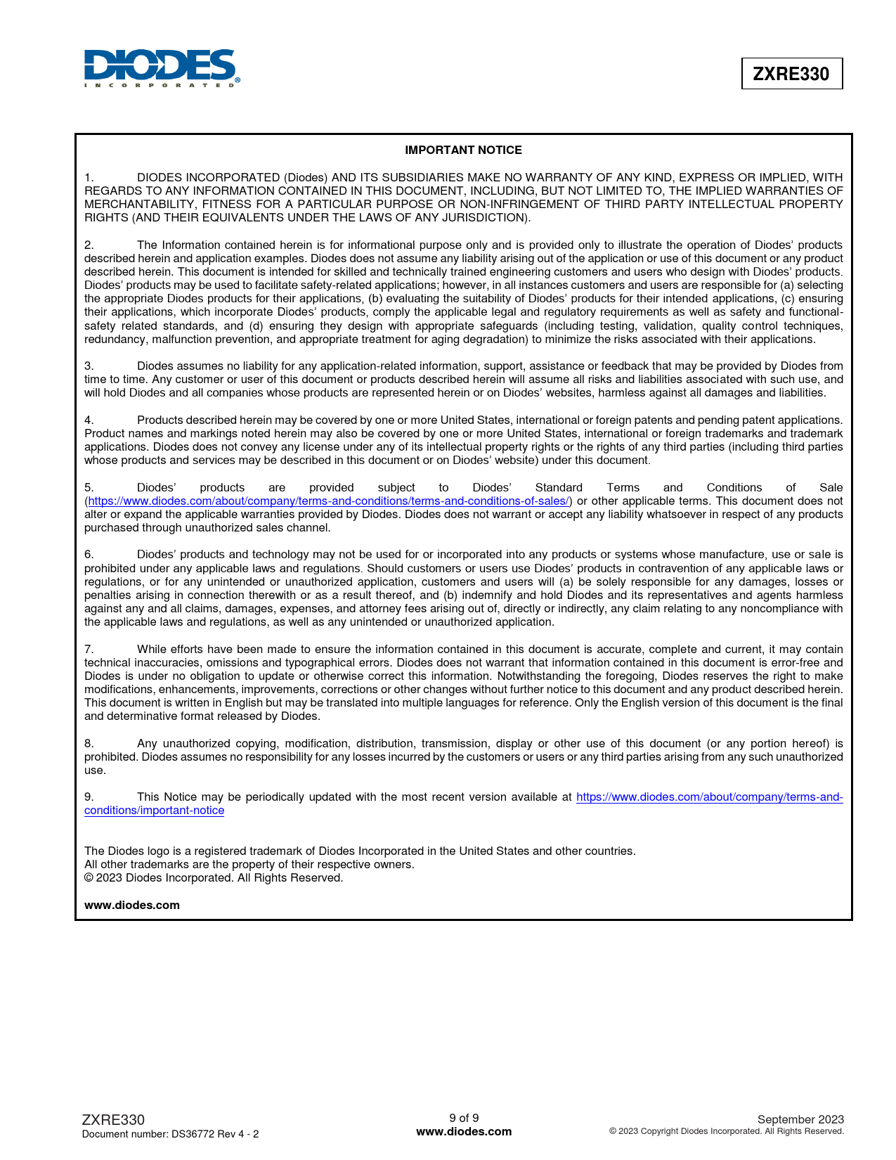 | 页数 / 页 | 9 / 9 — ZXRE330. IMPORTANT NOTICE. www.diodes.com |