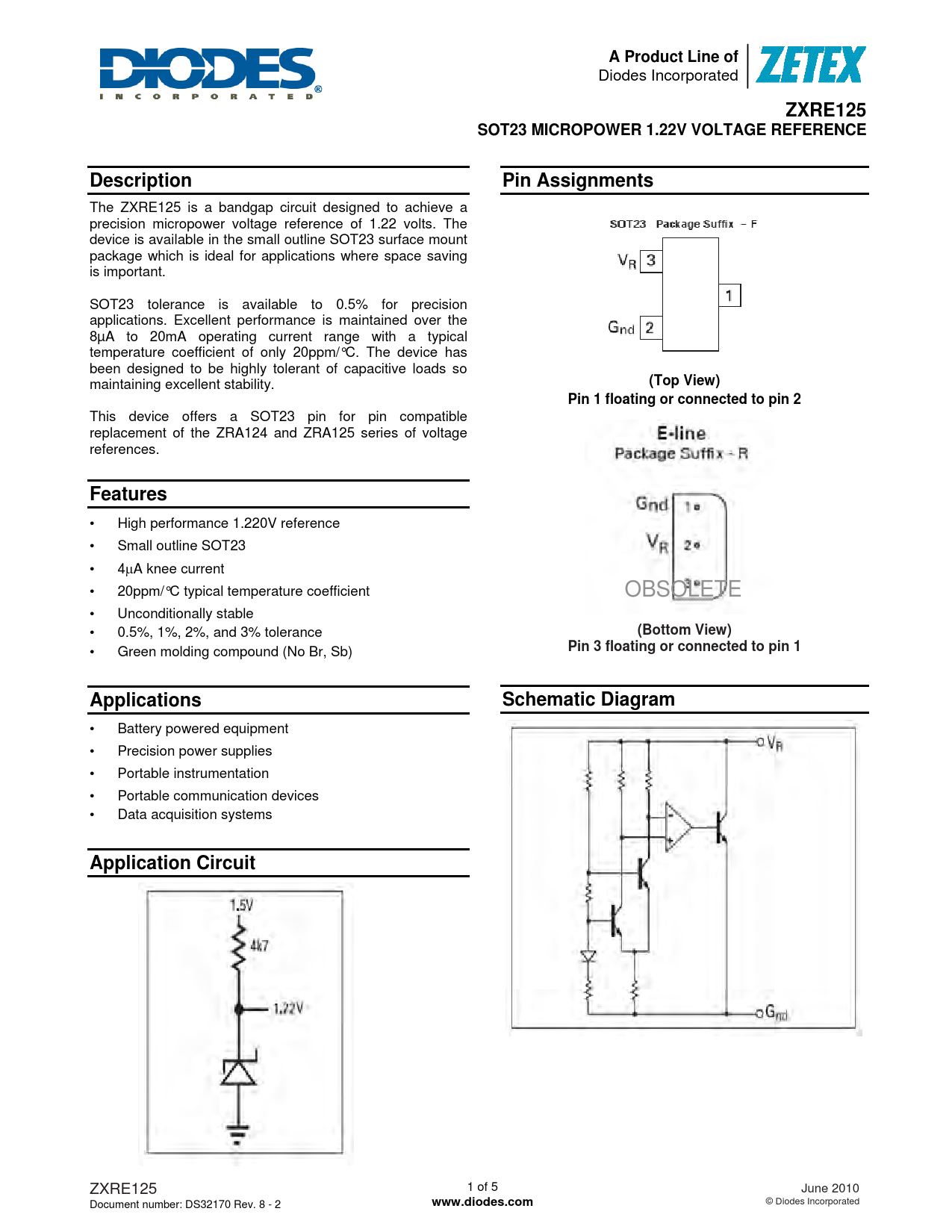 ZXRE125 1 of 5 June 2010 Document number: DS32170 Rev. 8 - 2