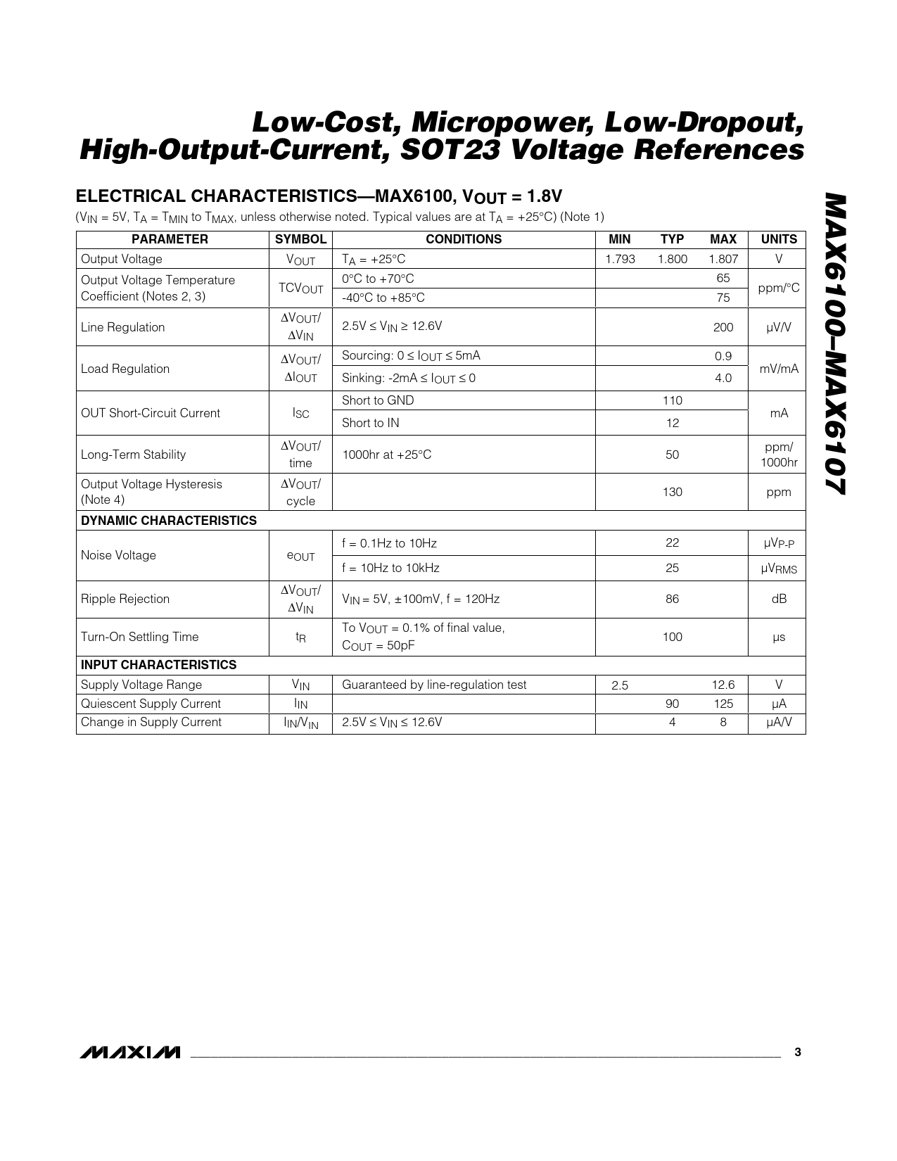 Low-Cost, Micropower, Low-Dropout, High-Output-Current, SOT23 Voltage References MAX6100–MAX6107 ELECTRICAL CHARACTERISTICS—MAX6100, VOUT = 1.8V