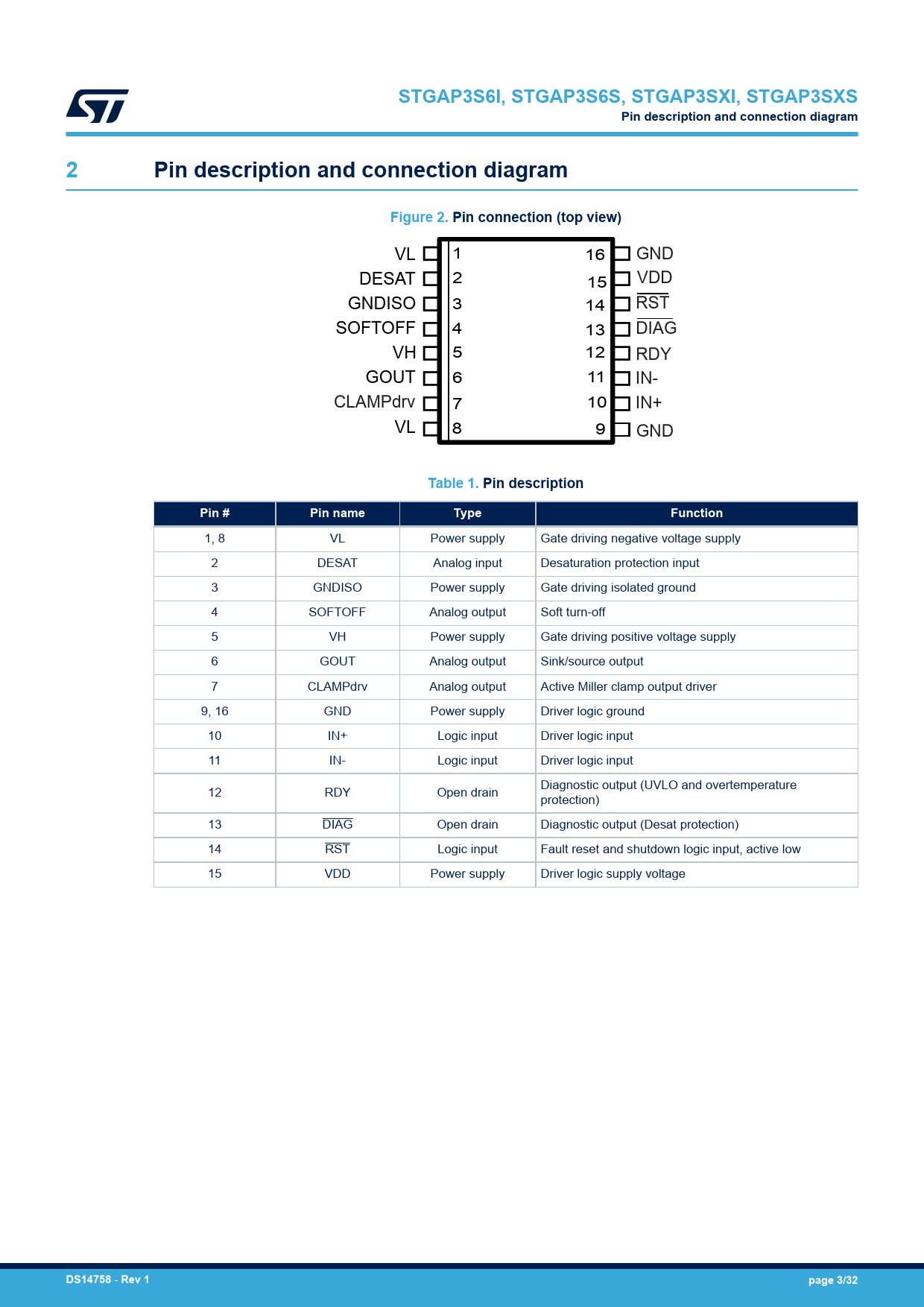 | 页数 / 页 | 32 / 3 — STGAP3S6I, STGAP3S6S, STGAP3SXI, STGAP3SXS. Pin description and … |