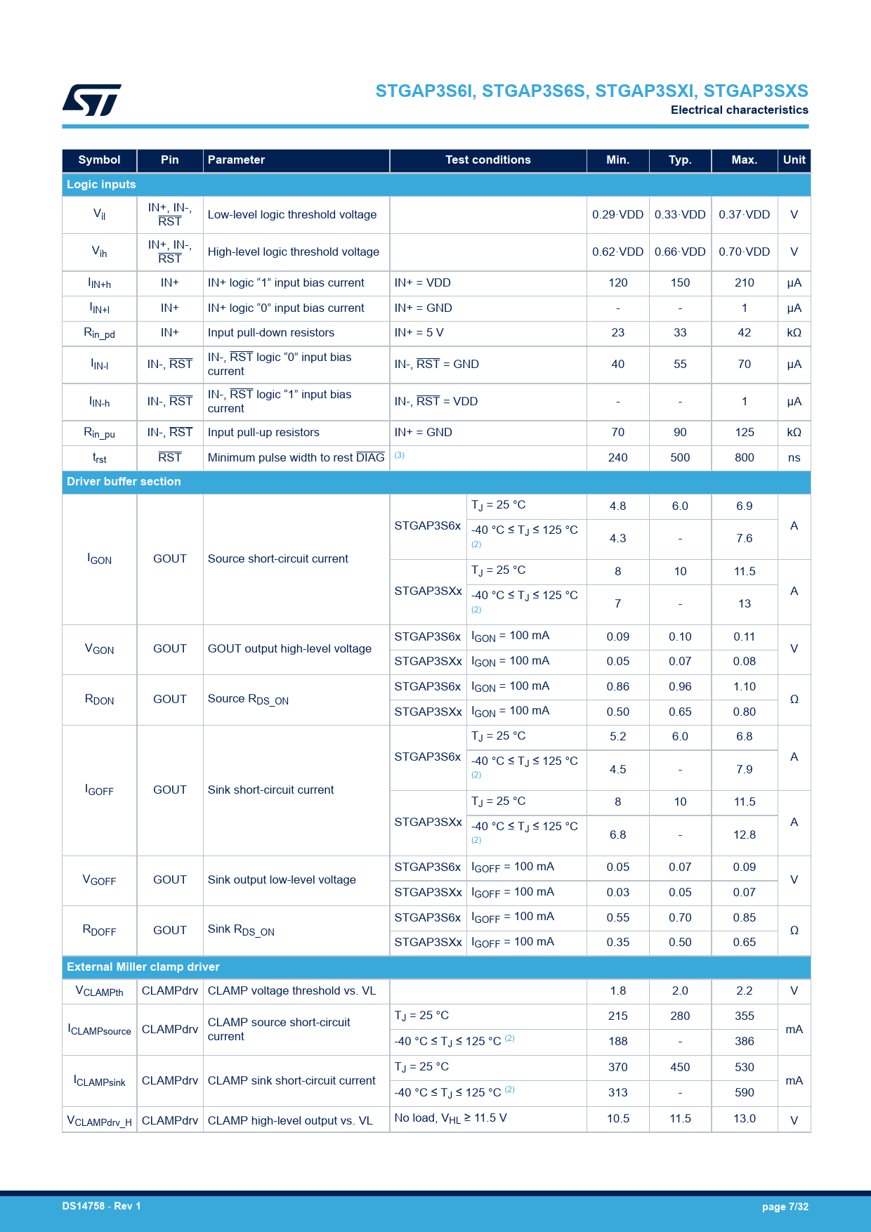 | 页数 / 页 | 32 / 7 — STGAP3S6I, STGAP3S6S, STGAP3SXI, STGAP3SXS. Electrical characteristics. … |
