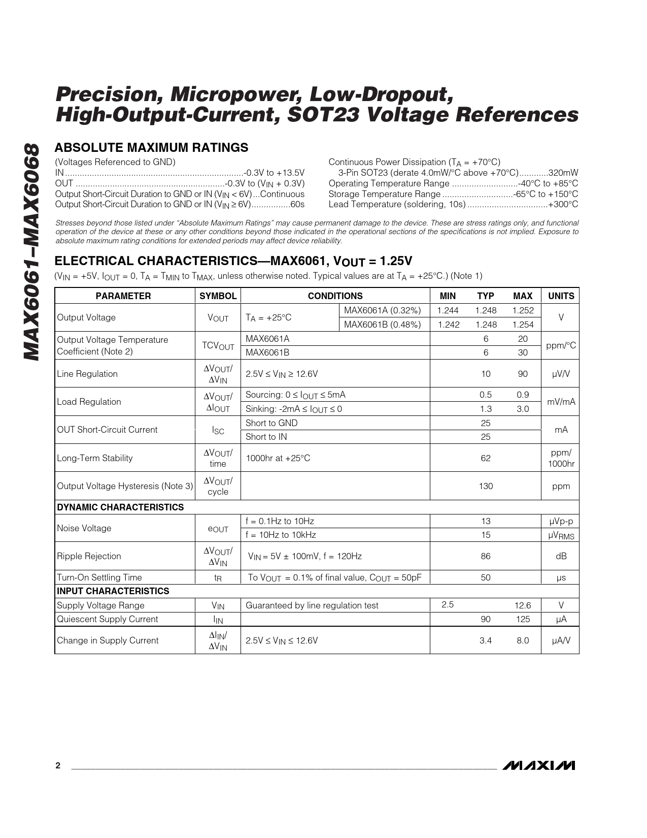 Datasheet MAX6061, MAX6062, MAX6063, MAX6064, MAX6065, MAX6066, MAX6067, MAX6068 (Analog Devices) - 2