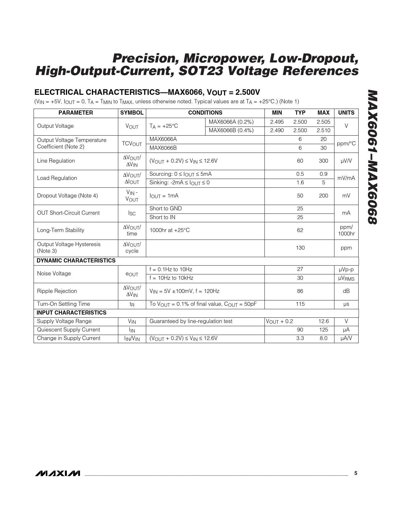 Precision, Micropower, Low-Dropout, High-Output-Current, SOT23 Voltage References MAX6061–MAX6068 ELECTRICAL CHARACTERISTICS—MAX6066, VOUT = 2.500V