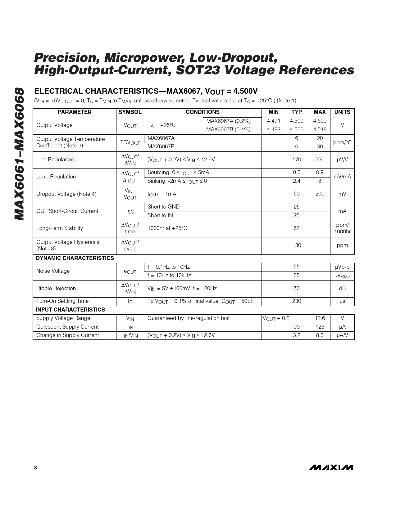 Precision, Micropower, Low-Dropout, High-Output-Current, SOT23 Voltage References ELECTRICAL CHARACTERISTICS—MAX6067, VOUT = 4.500V