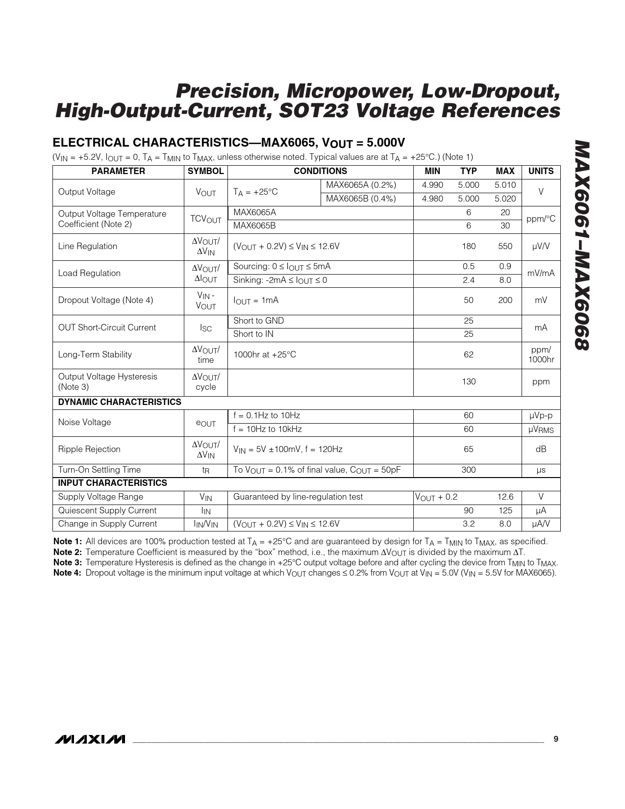 Precision, Micropower, Low-Dropout, High-Output-Current, SOT23 Voltage References MAX6061–MAX6068 ELECTRICAL CHARACTERISTICS—MAX6065, VOUT = 5.000V