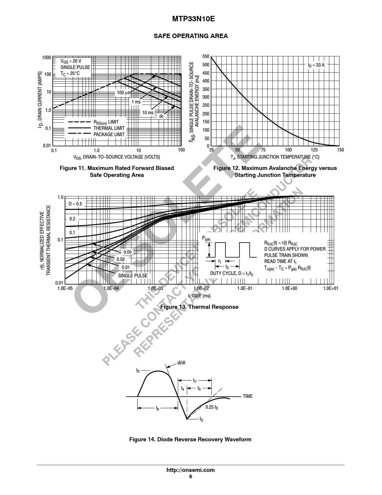 MTP33N10E. SAFE OPERATING AREA. Figure 11. Maximum Rated Forward Biased. Figure 12. Maximum Avalanche Energy versus