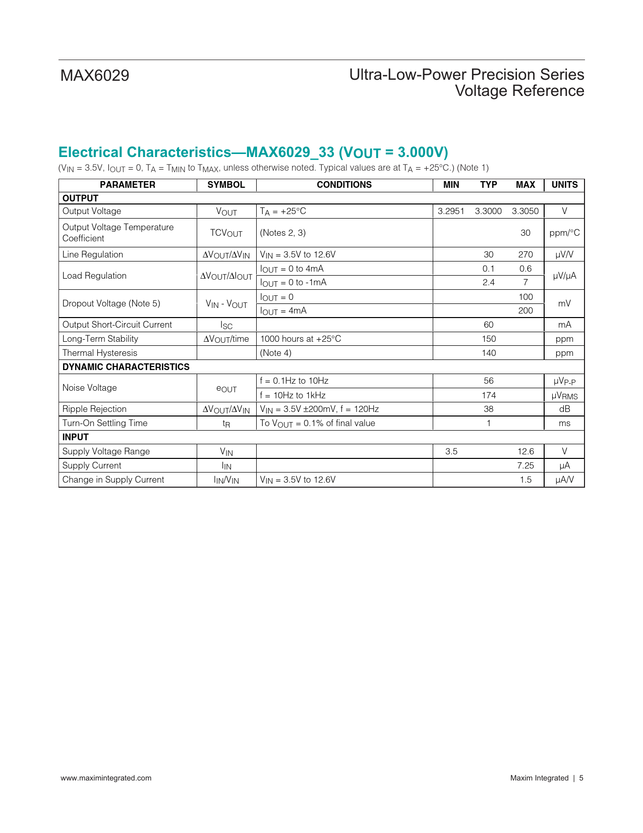 Electrical Characteristics—MAX6029_33 (VOUT = 3.000V). PARAMETER. SYMBOL. CONDITIONS. MIN. TYP. MAX. UNITS. OUTPUT