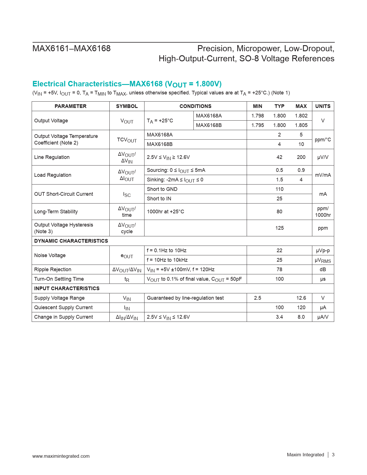 页数 / 页17 / 3 — Electrical Characteristics—MAX6168 (VOUT = 1.800V). PARAMETER. SYMBOL. …