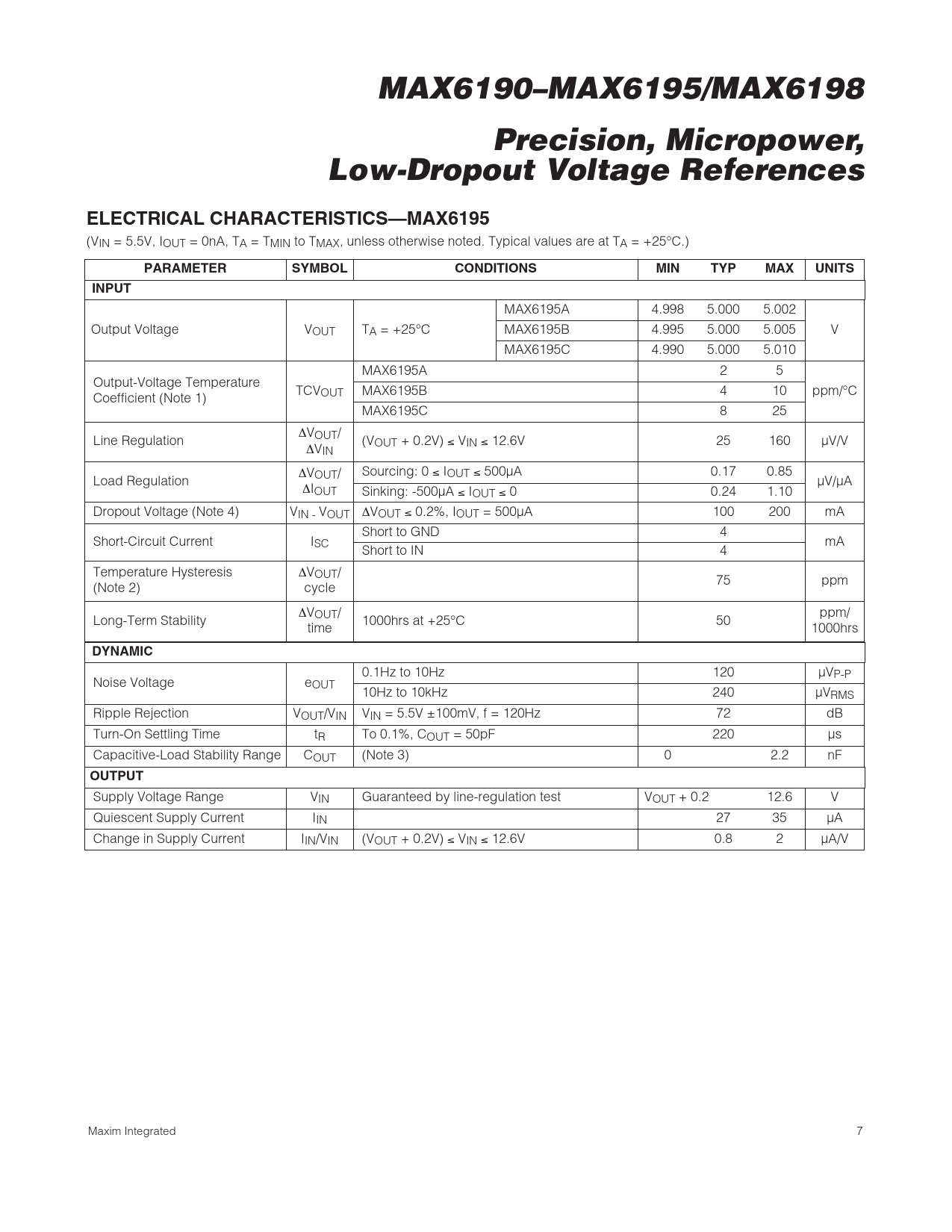 MAX6190–MAX6195/MAX6198 Precision, Micropower, Low-Dropout Voltage References ELECTRICAL CHARACTERISTICS—MAX6195