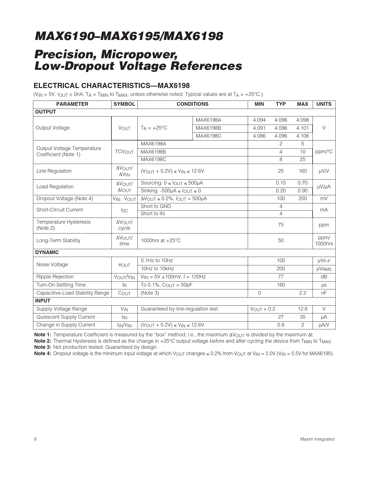 MAX6190–MAX6195/MAX6198 Precision, Micropower, Low-Dropout Voltage References ELECTRICAL CHARACTERISTICS—MAX6198