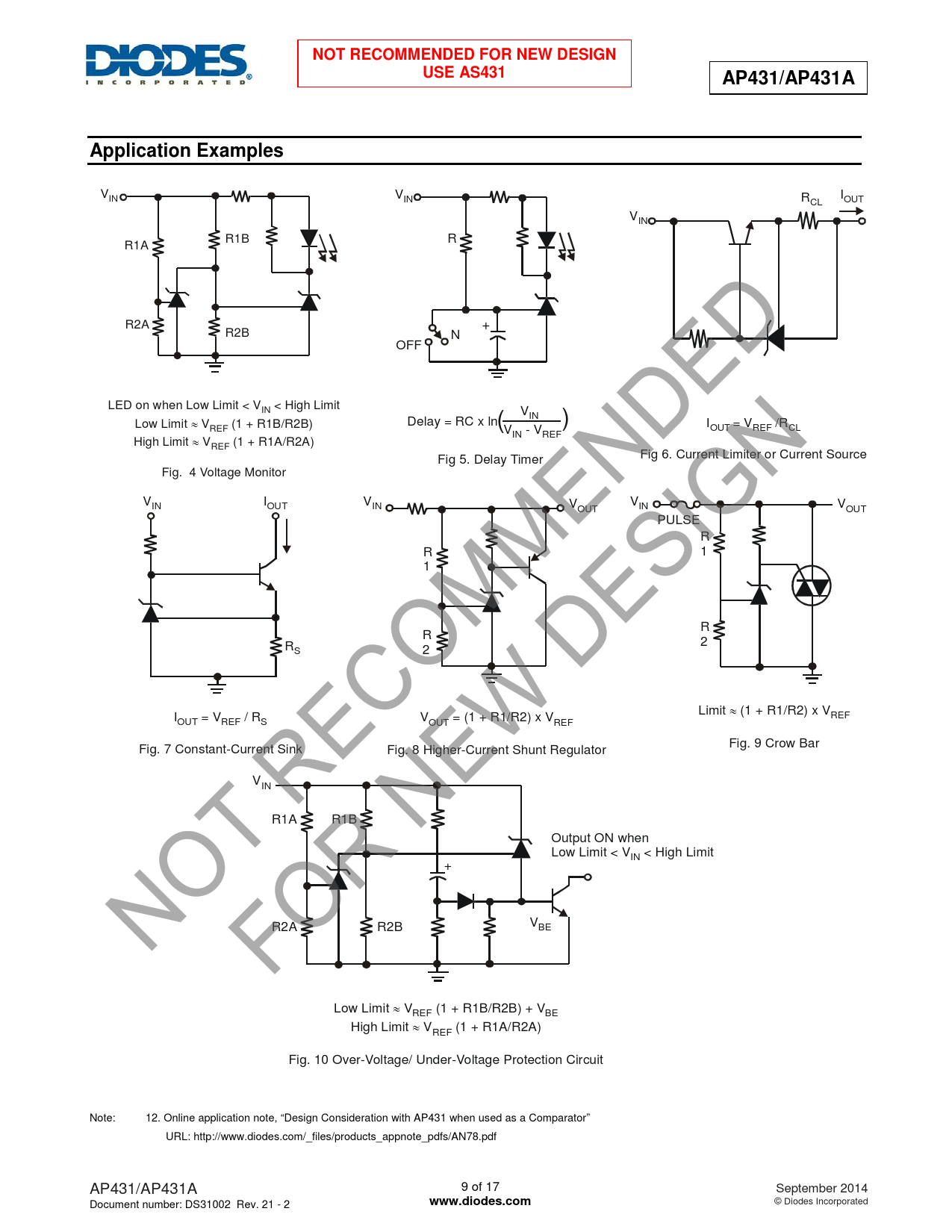 NOT RECOMMENDED FOR NEW DESIGN. USE AS431. AP431/AP431A. Application Examples. www.diodes.com