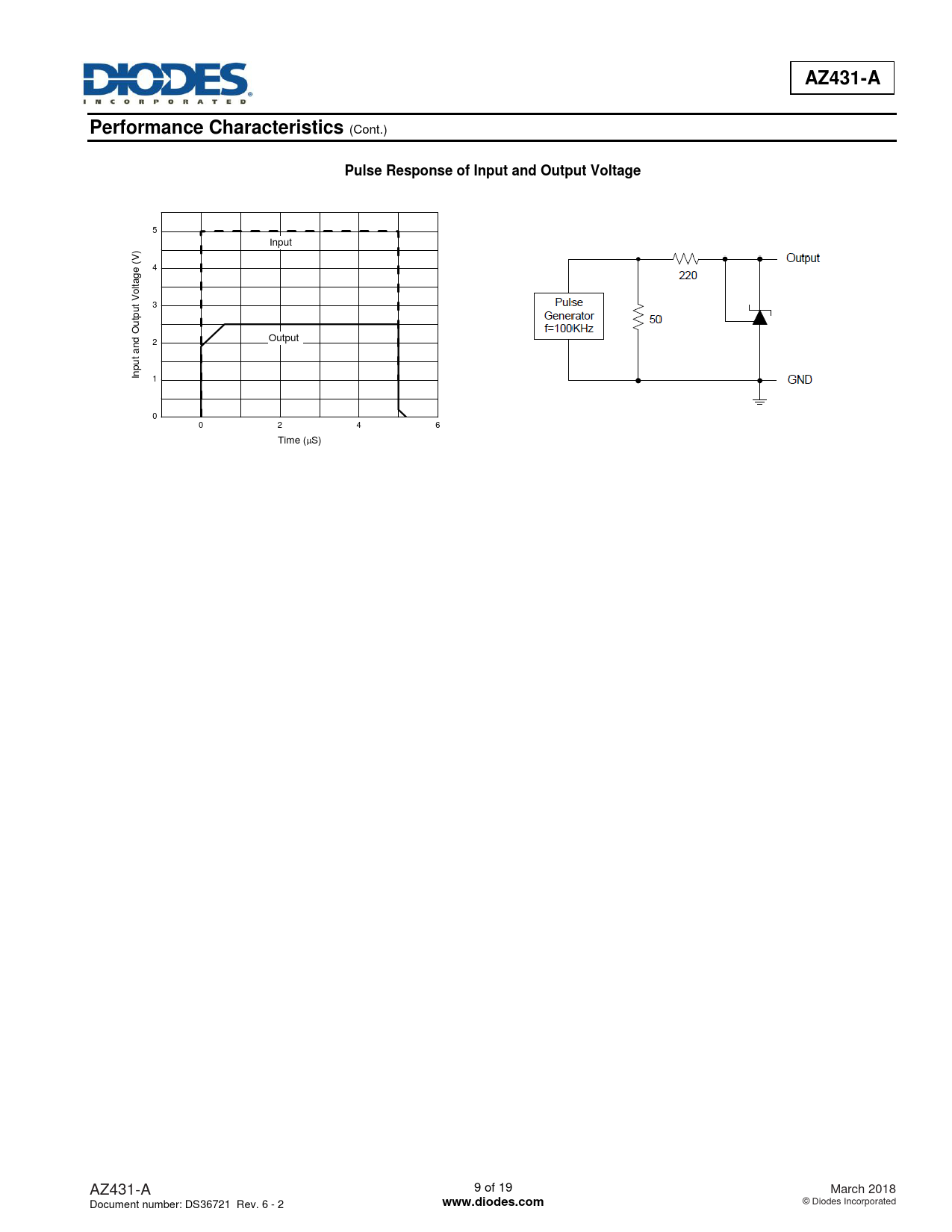 AZ431-A. Performance Characteristics. Pulse Response of Input and Output Voltage. www.diodes.com