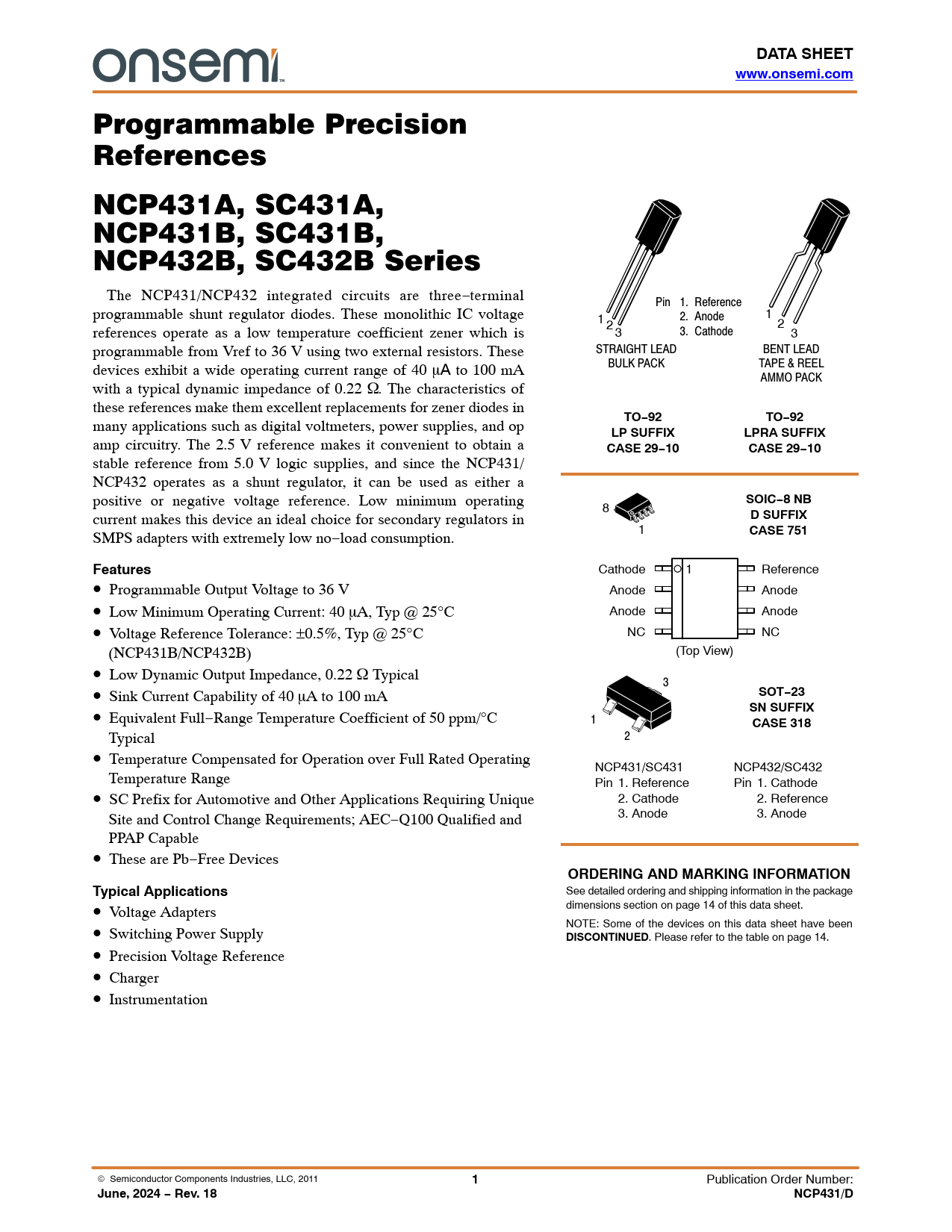 June, 2024 − Rev. 18 NCP431/D