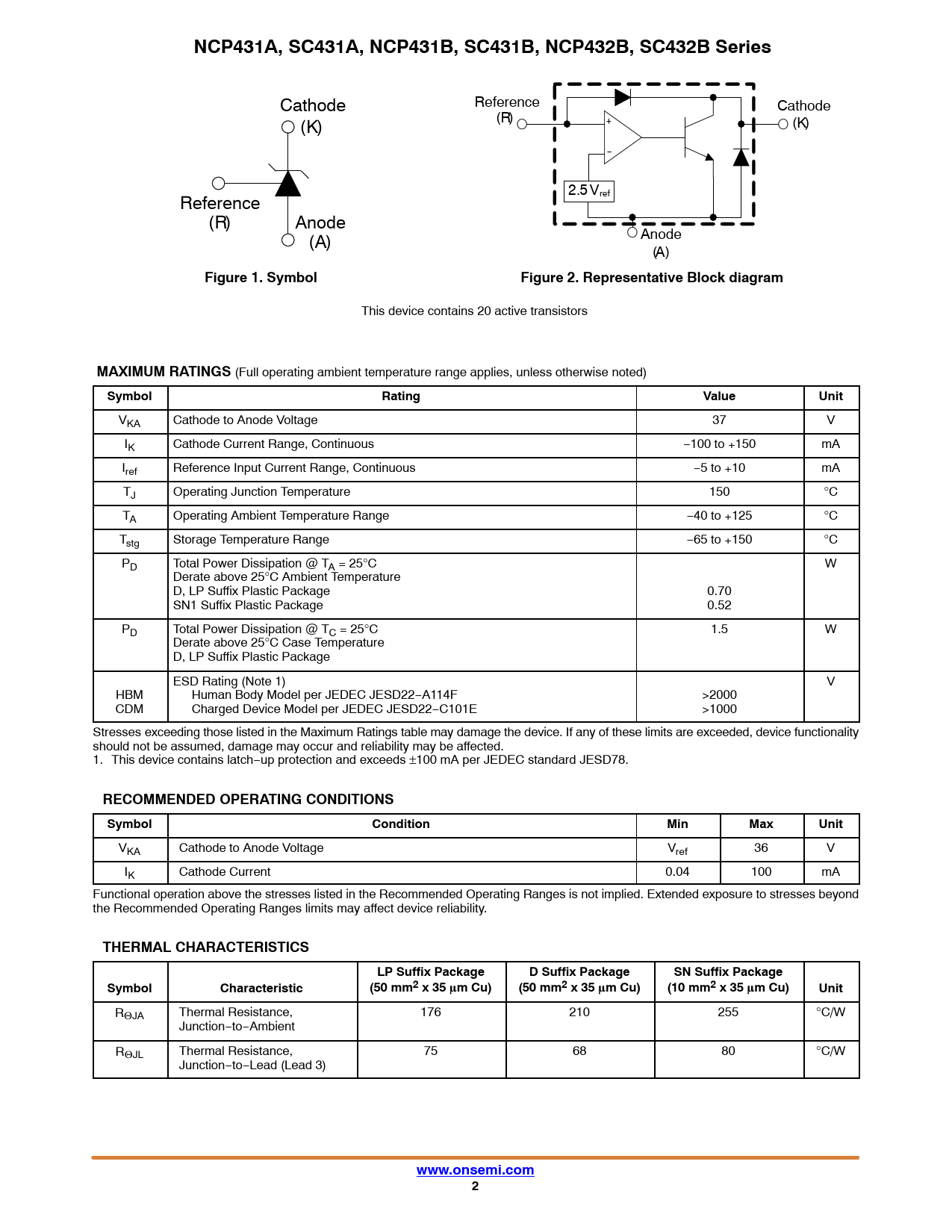 Datasheet NCP431A, SC431A, NCP431B, SC431B, NCP432B, SC432B (ON Semiconductor) - 2