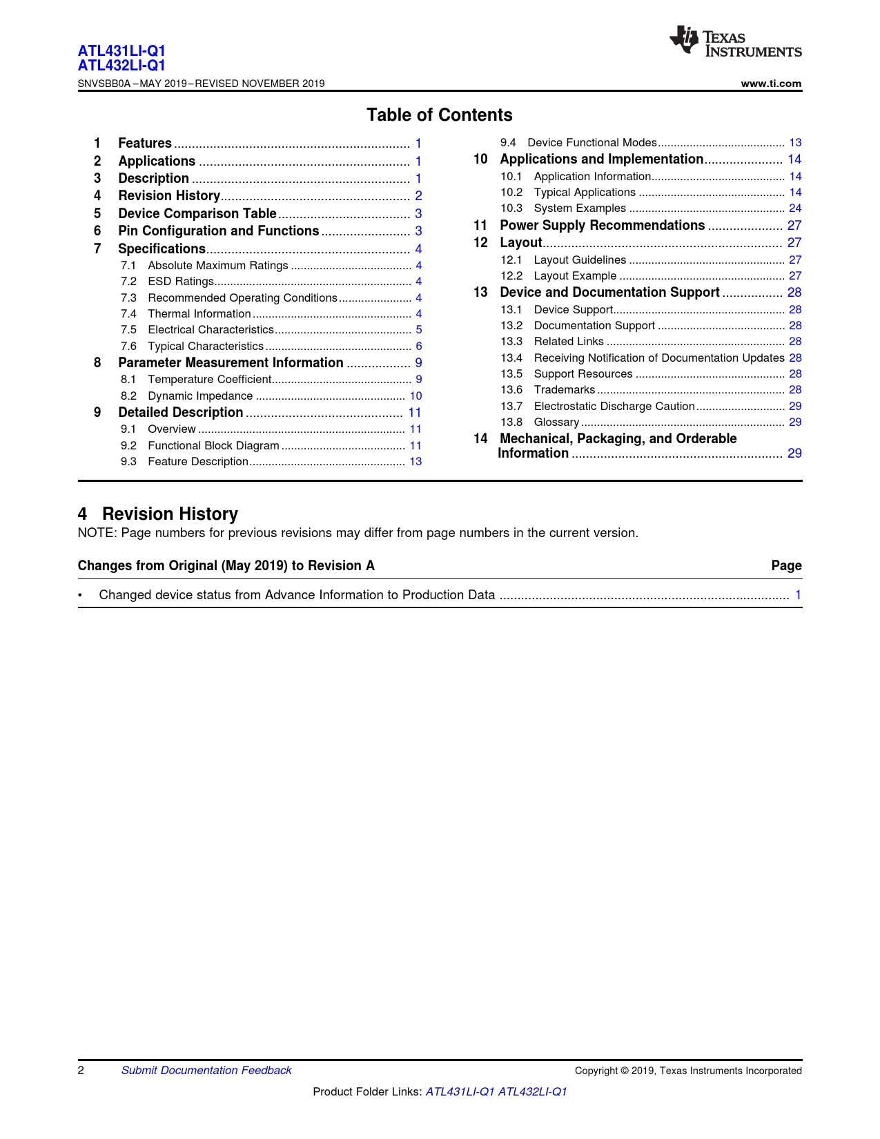 | 页数 / 页 | 37 / 2 — ATL431LI-Q1. ATL432LI-Q1. www.ti.com. Table of Contents. Features. … |