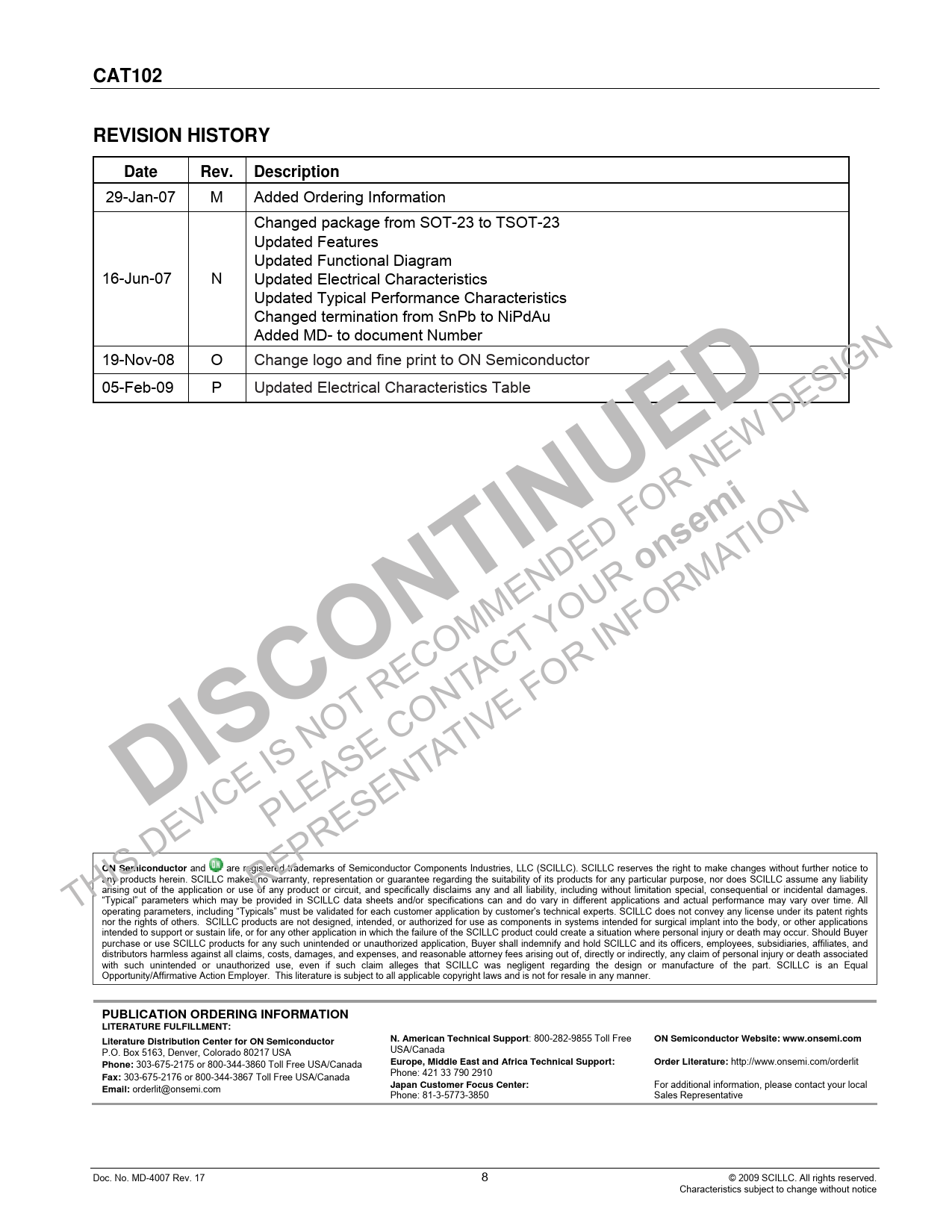 | 页数 / 页 | 9 / 9 — CAT102. REVISION HISTORY. Date Rev. Description. onsemi. DISCONTINUED. ON … |