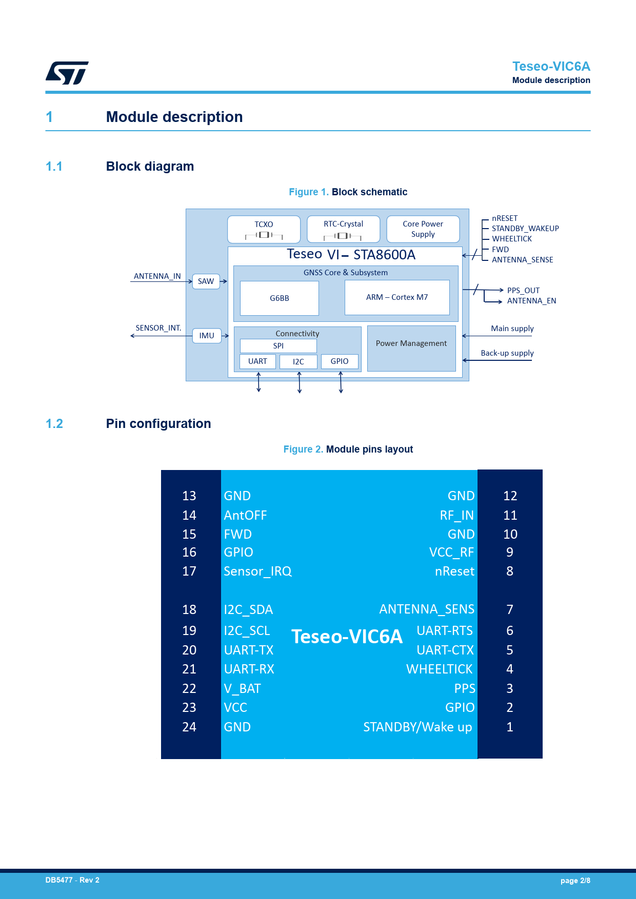 Teseo-VIC6A. Module description. 1.1. Block diagram. Figure 1. Block schematic. 1.2. Pin configuration. Figure 2. Module pins layout