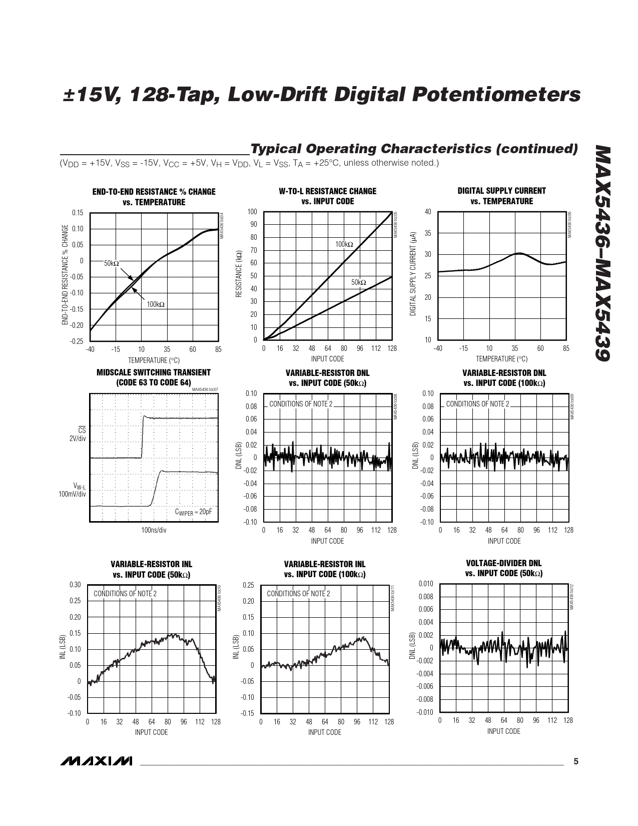 ±15V, 128-Tap, Low-Drift Digital Potentiometers. MAX5436–MAX5439. Typical Operating Characteristics (continued)