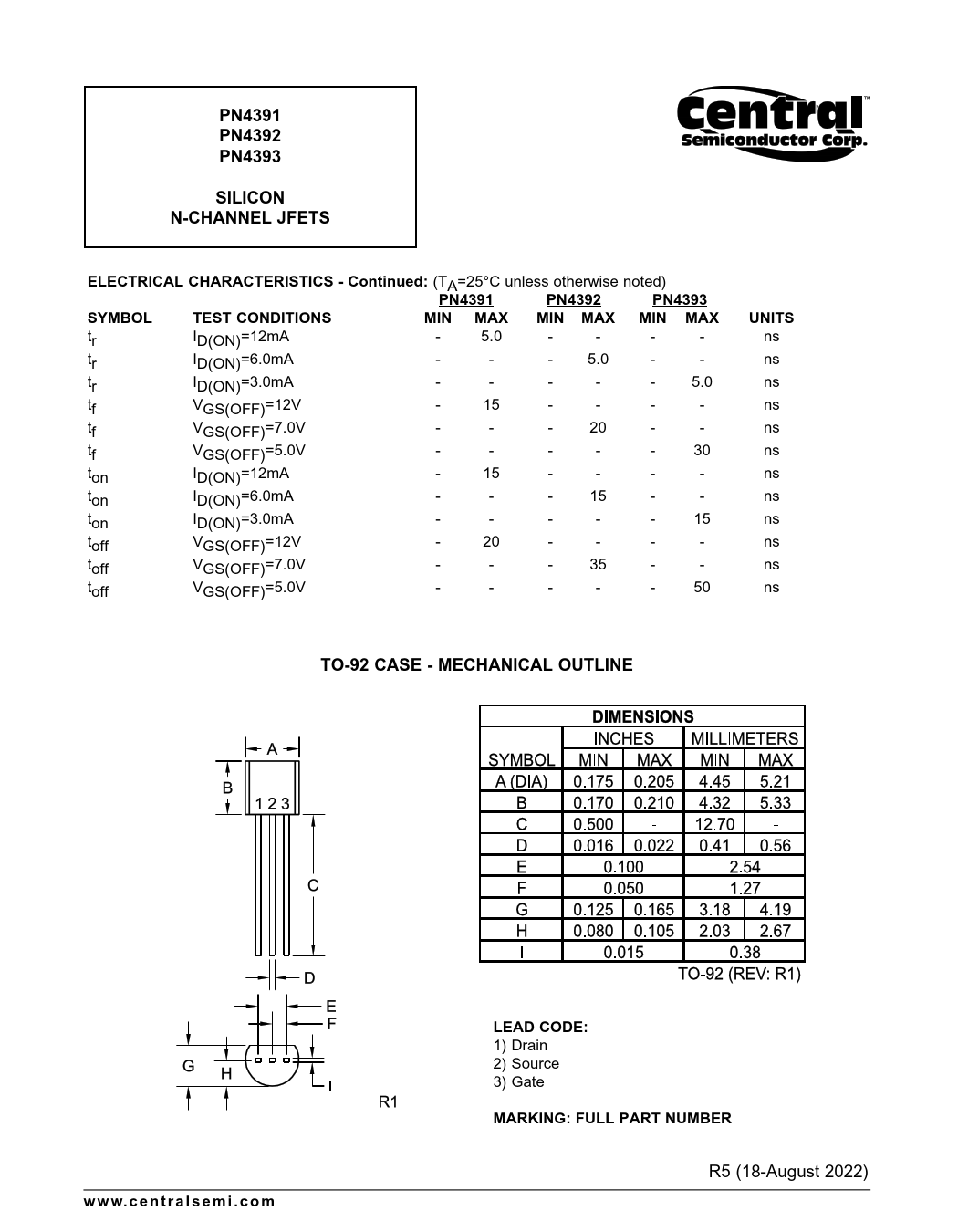Datasheet PN4391, PN4392, PN4393 (Central Semiconductor) - 2