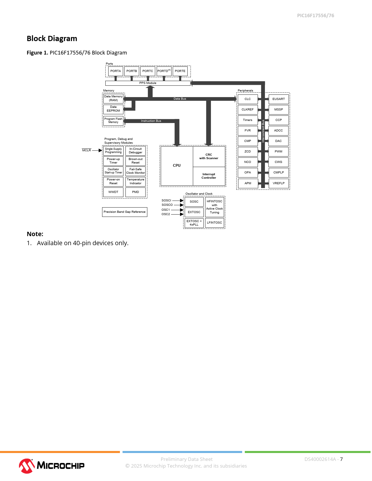 Datasheet PIC16F17556, PIC16F17576 (Microchip) - 7