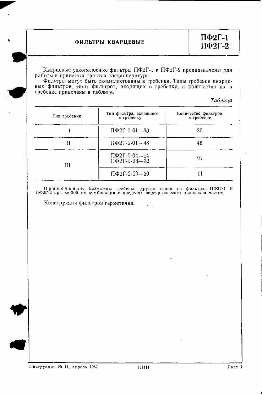 Datasheet ПФ2Г-1, ПФ2Г-2