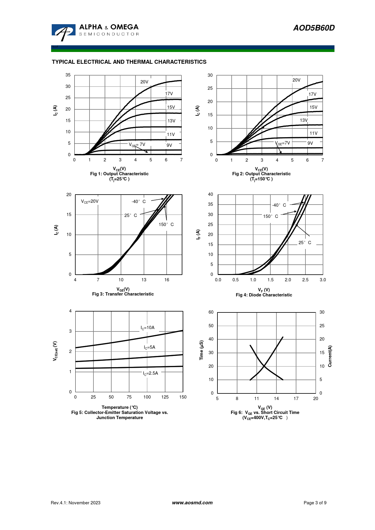 | 页数 / 页 | 9 / 3 — AOD5B60D. TYPICAL ELECTRICAL AND THERMAL CHARACTERISTICS. I C. V (V). Fig … |