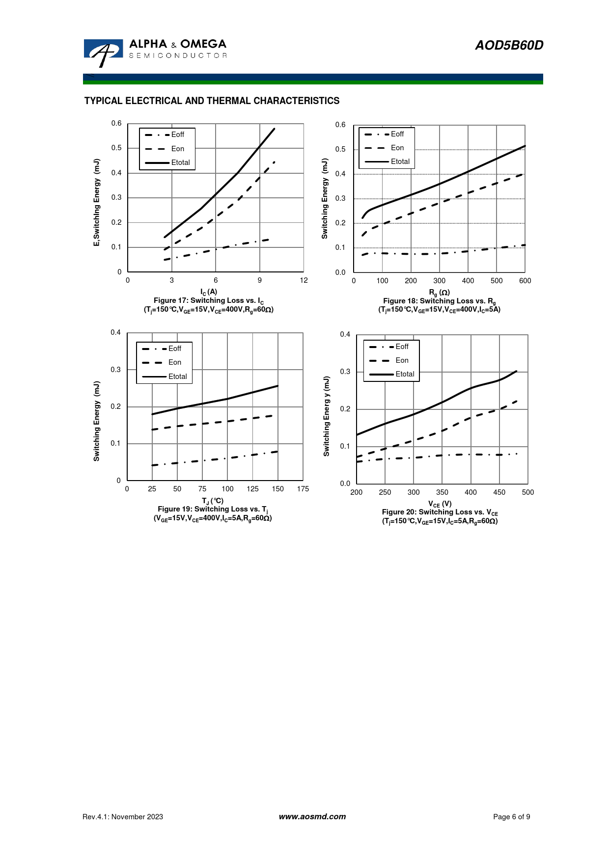 AOD5B60D. TYPICAL ELECTRICAL AND THERMAL CHARACTERISTICS. rgy. ergy n. g n. ng hi. chI. I (A). R (. Figure 17: Switching Loss vs. I