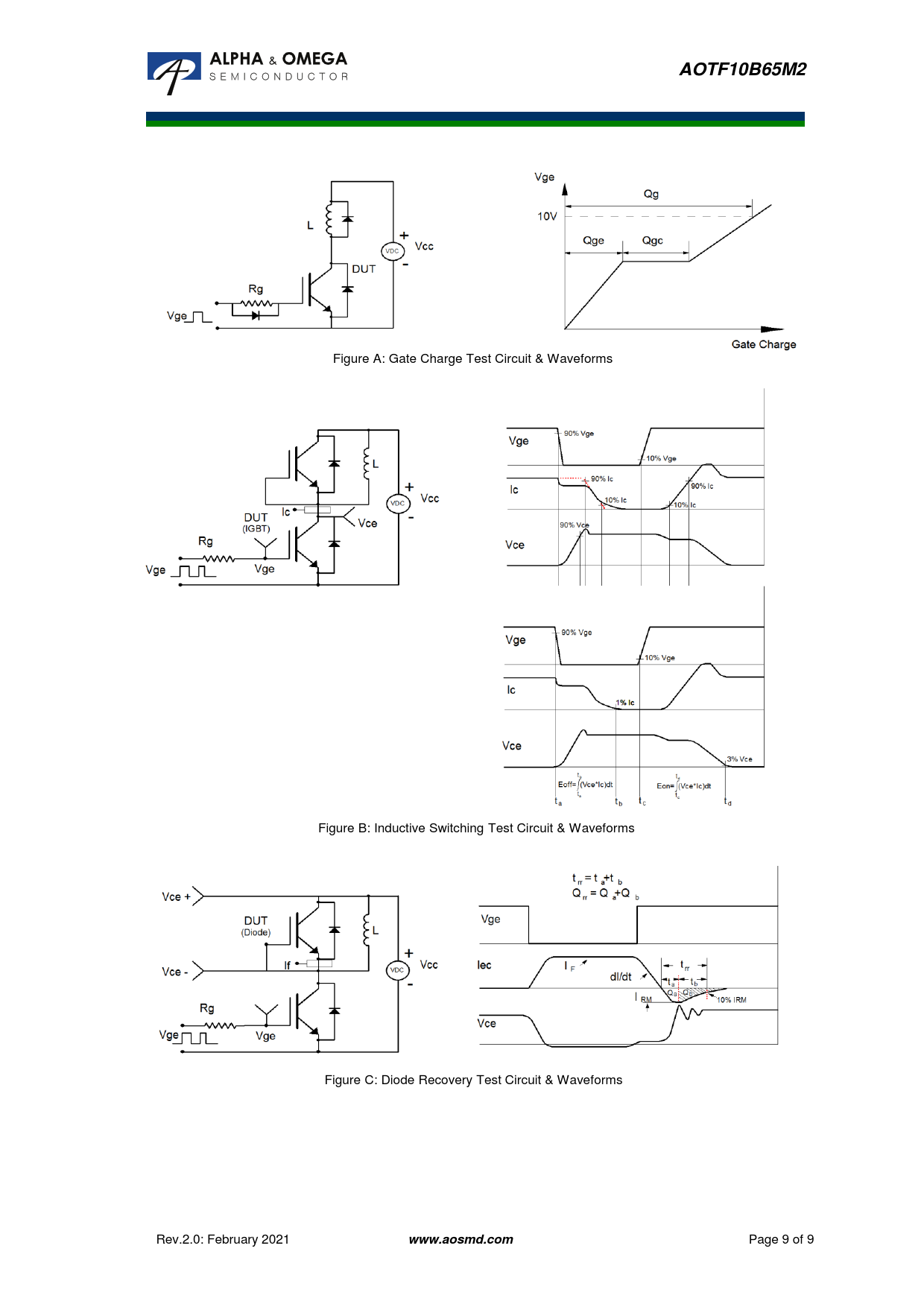 Figure A: Gate Charge Test Circuit & Waveforms Figure B: Inductive Switching Test Circuit & Waveforms Figure C: Diode Recovery Test Circuit & Waveforms Rev.2.0: February 2021