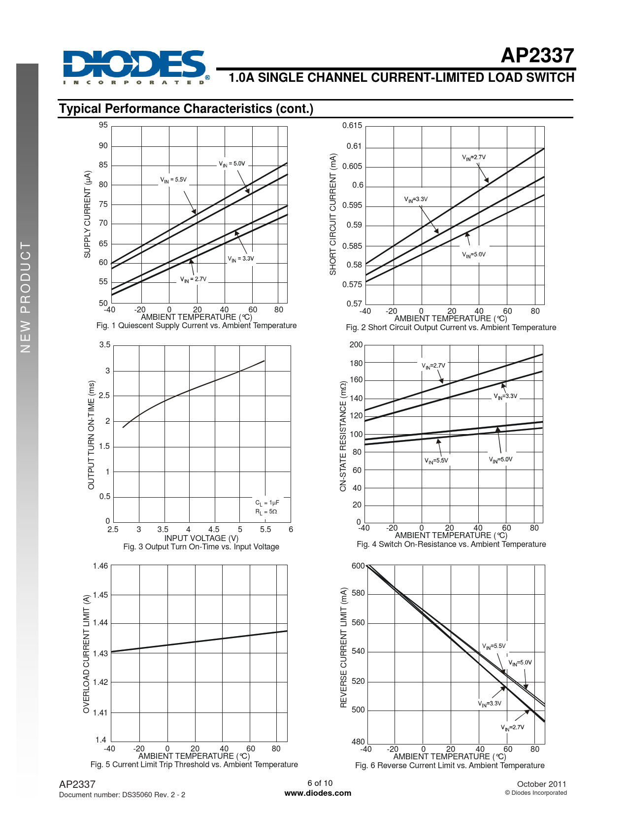 AP2337. 1.0A SINGLE CHANNEL CURRENT-LIMITED LOAD SWITCH. Typical Performance Characteristics (cont.). NEW PROD. www.diodes.com