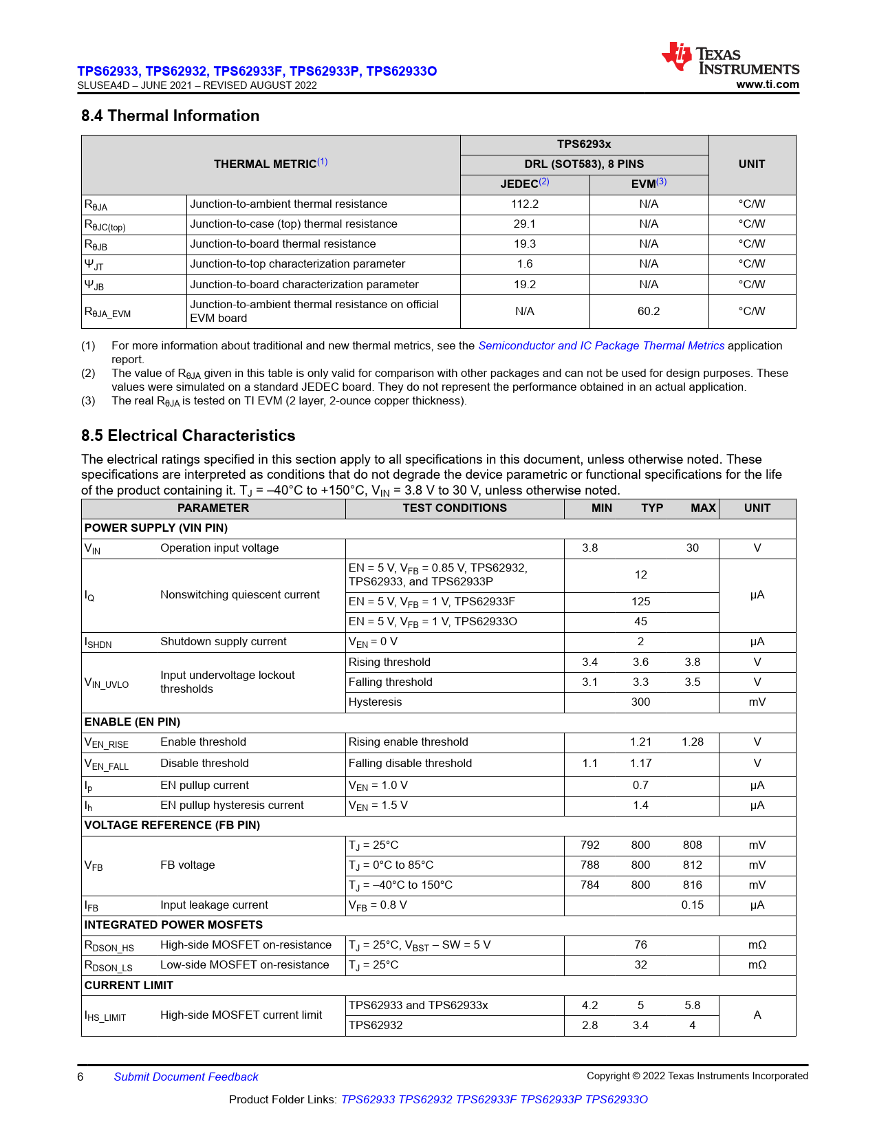 TPS62933,. TPS62932. , TPS62933F, TPS62933P, TPS62933O. www.ti.com. 8.4 Thermal Information. TPS6293x. THERMAL METRIC