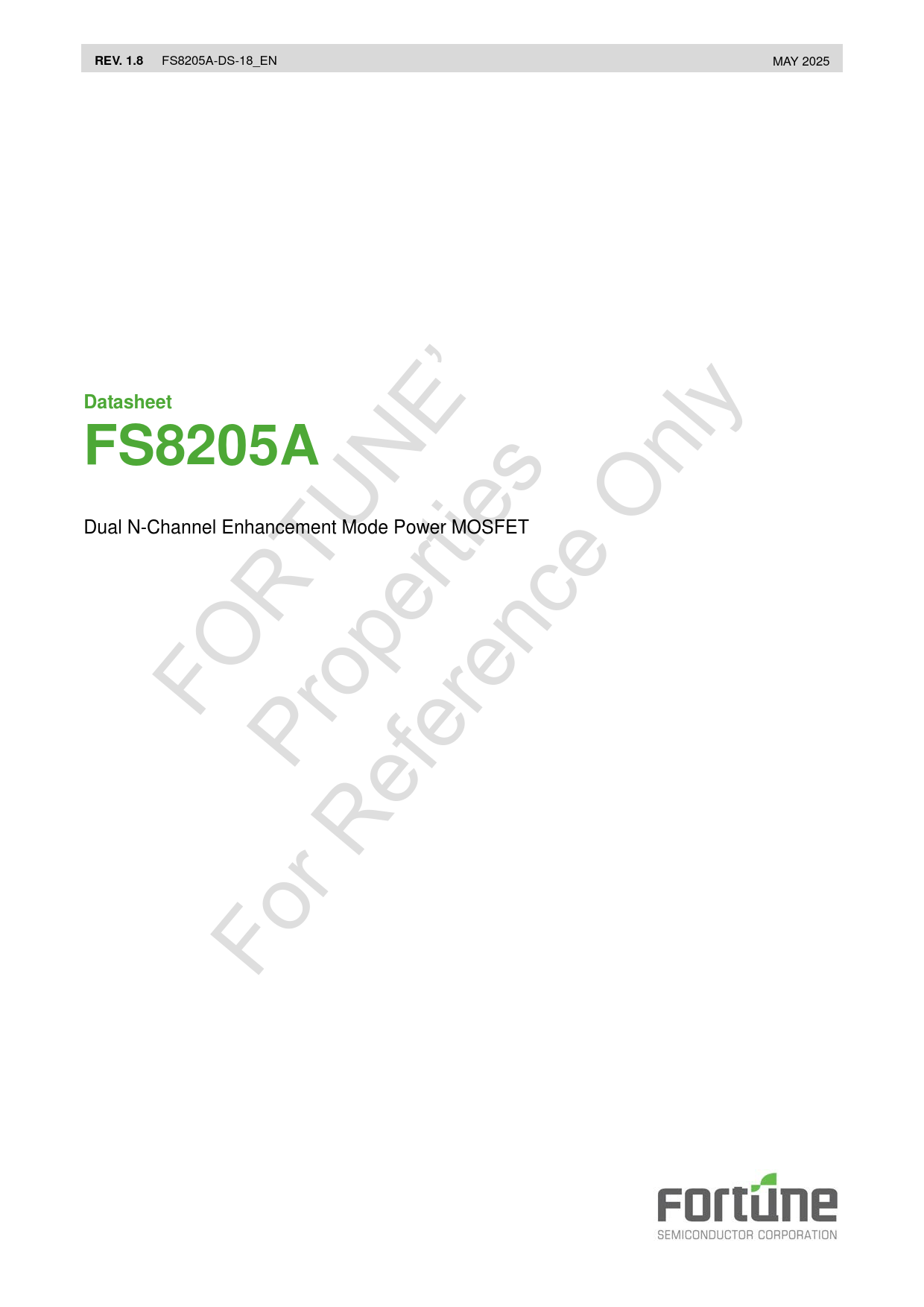 y REV. 1.8 Datasheet FS8205A Dual N-Channel Enhancement Mode Power MOSFET MAY 2025