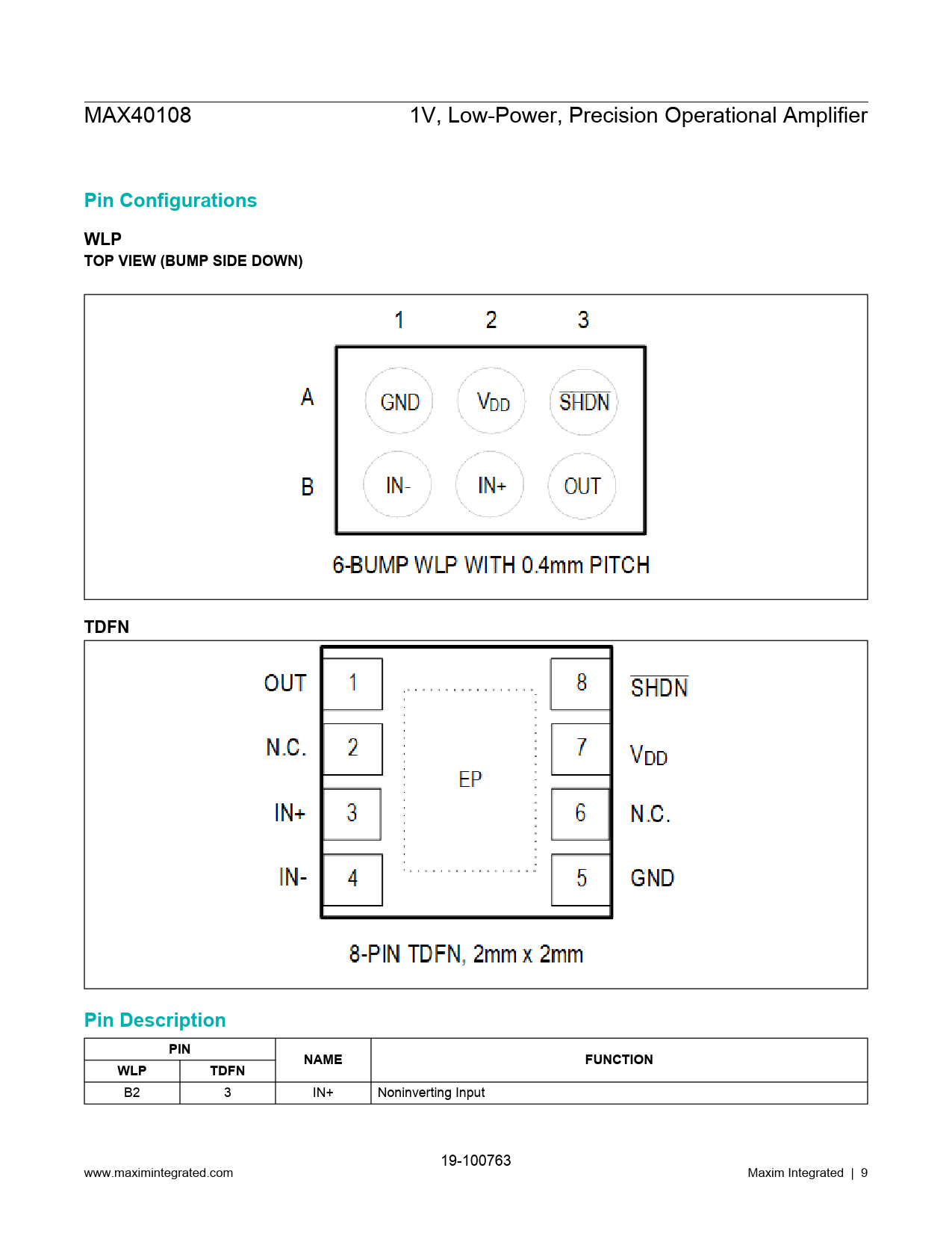 Pin Configurations. WLP TOP VIEW (BUMP SIDE DOWN). TDFN. Pin Description. PIN. NAME. FUNCTION. WLP