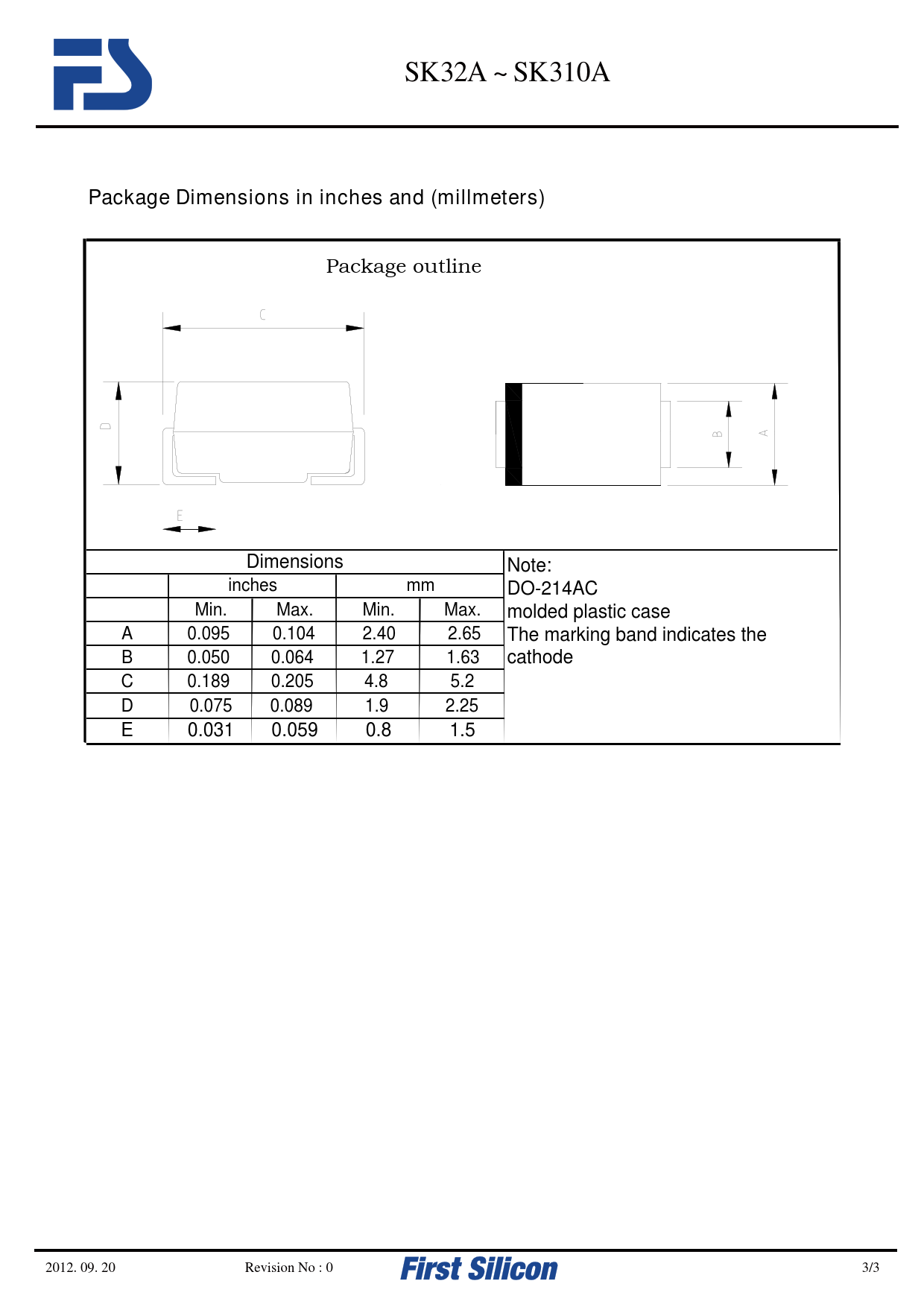 页数 / 页3 / 3 — SK32A ~ SK310A. Package Dimensions in inches and (millmeters)