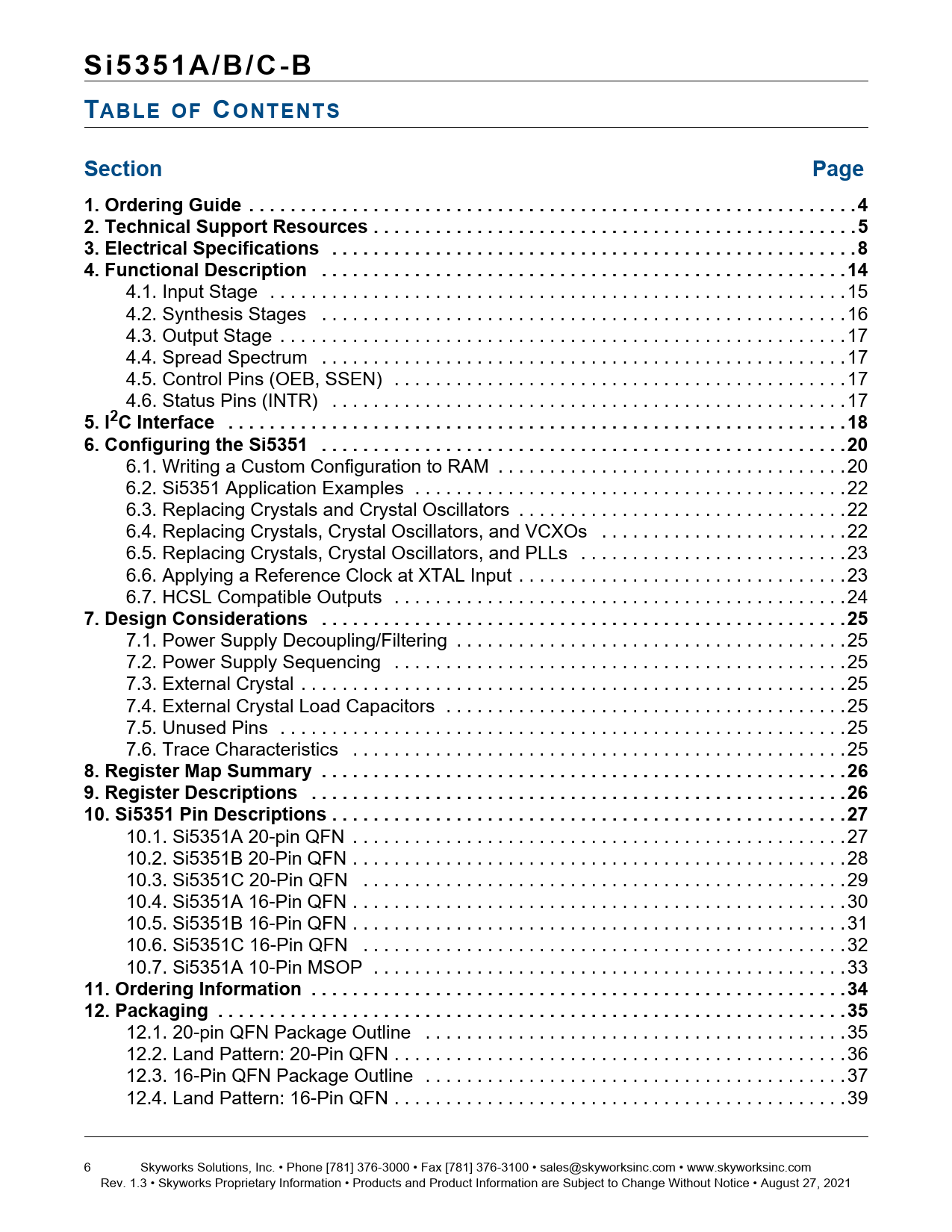Si5351A/B/C-B TABLE OF CONTENTS. Section. Page. 1. Ordering Guide . .4. 2. Technical Support Resources . .5