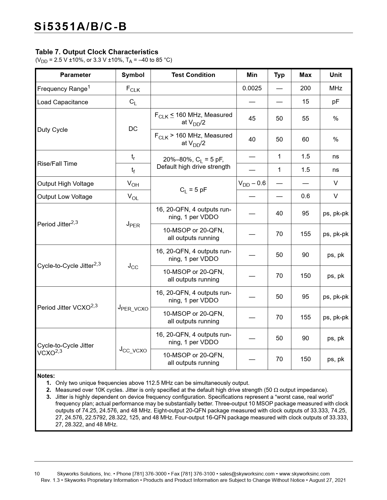Si5351A/B/C-B Table 7. Output Clock Characteristics