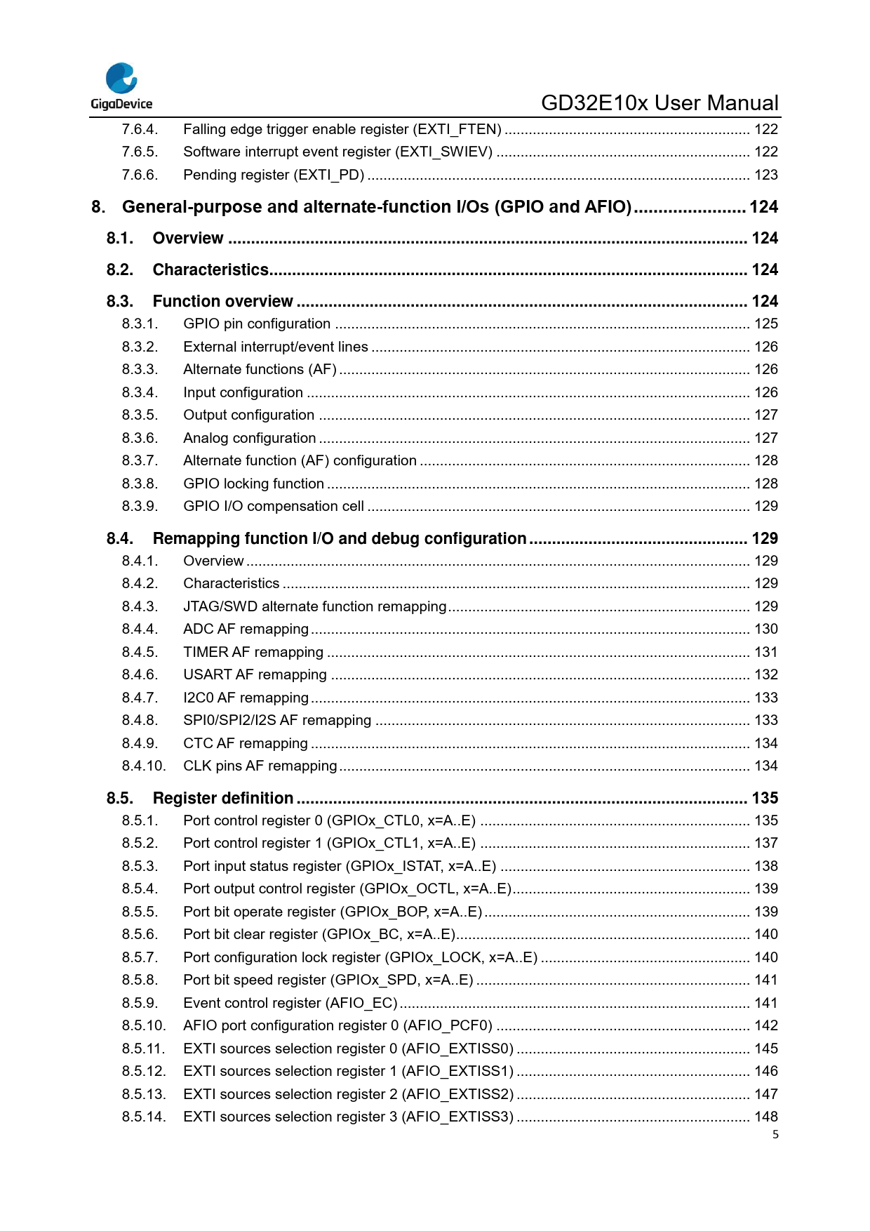 | 页数 / 页 | 592 / 5 — General-purpose and alternate-function I/Os (GPIO and AFIO) ... 124. 8.1. … |