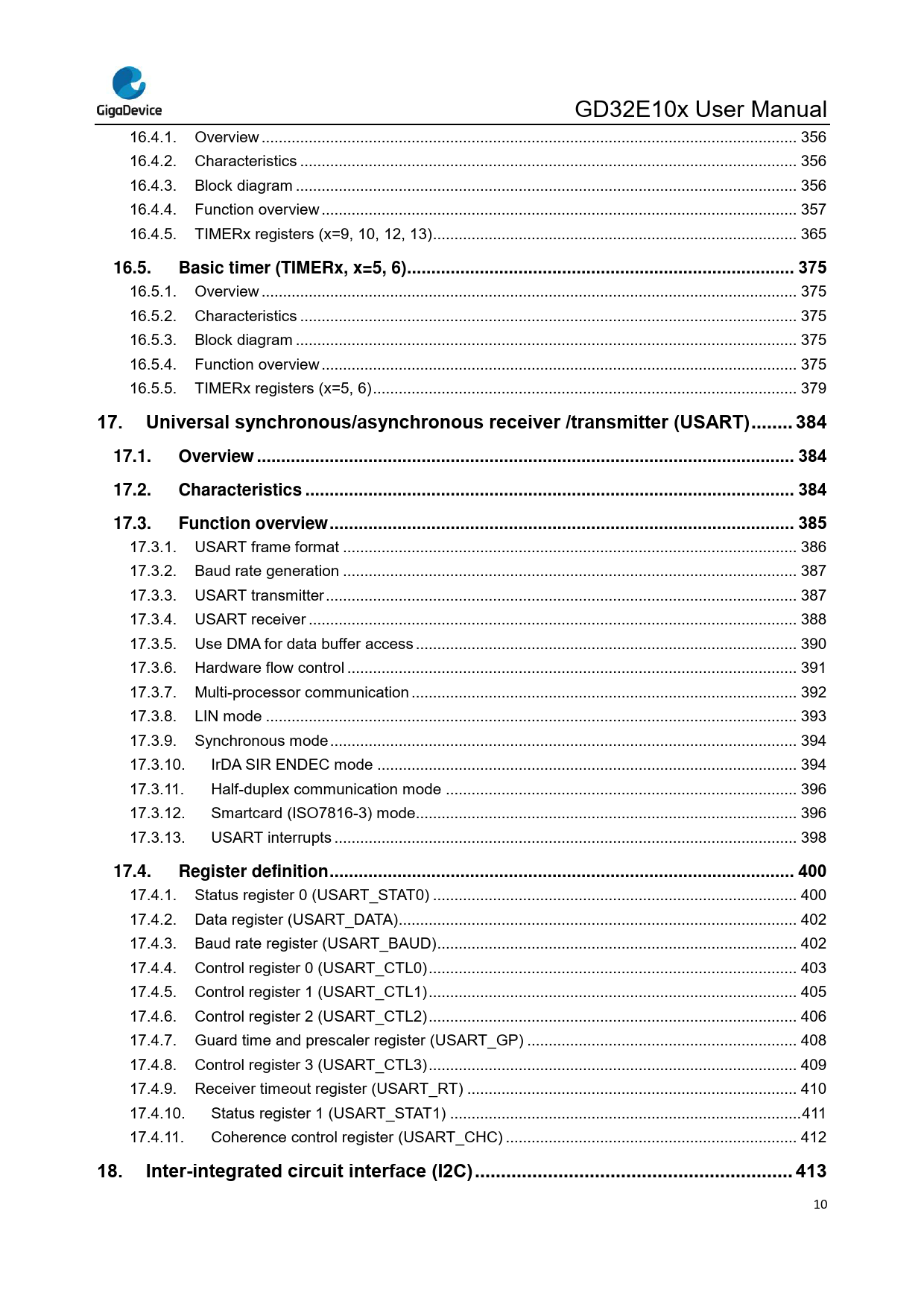 16.5. Basic timer (TIMERx, x=5, 6) .. 375. 17. Universal synchronous/asynchronous receiver /transmitter (USART) .. 384. 17.1