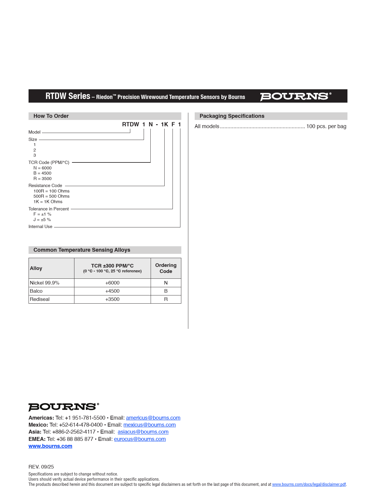 RTDW Series – Riedon™ Precision Wirewound Temperature Sensors by Bourns. How To Order. Packaging Specifications