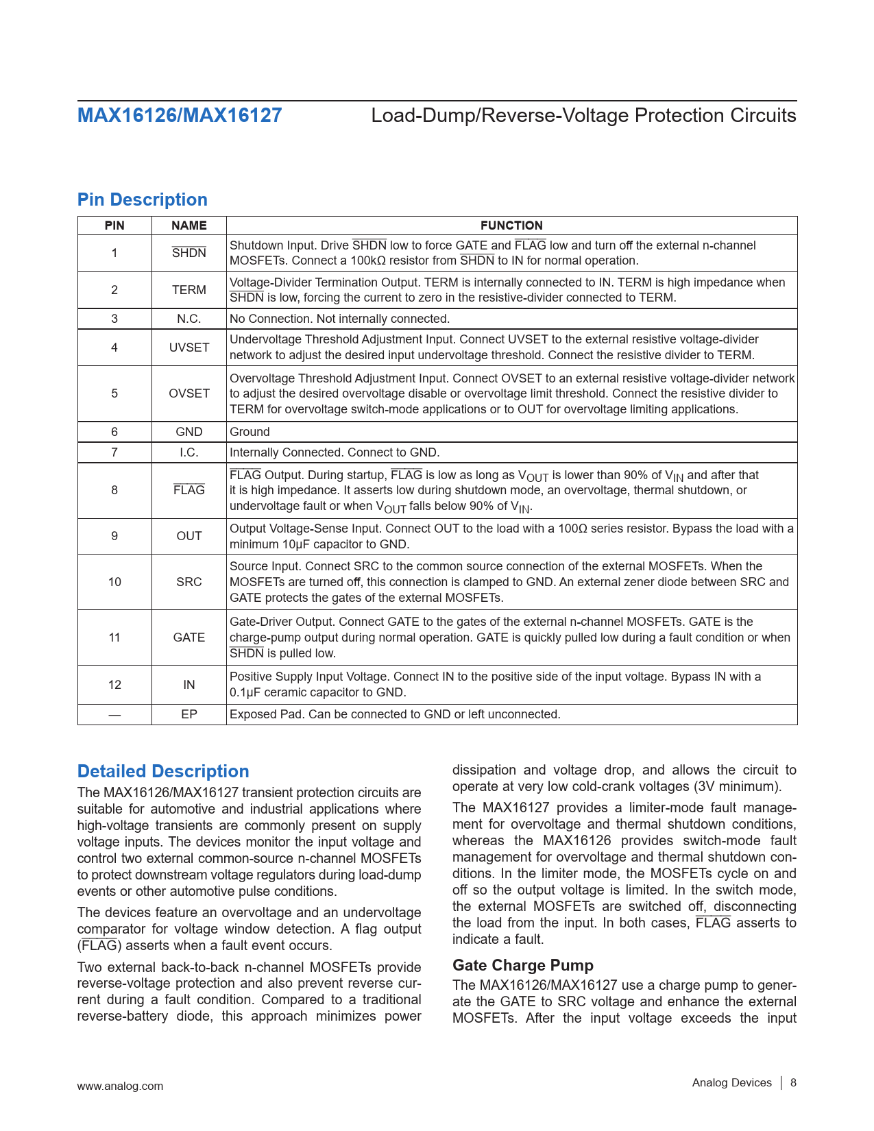 页数 / 页19 / 8 — MAX16126/MAX16127. Pin Description. PIN. NAME. FUNCTION. Detailed …