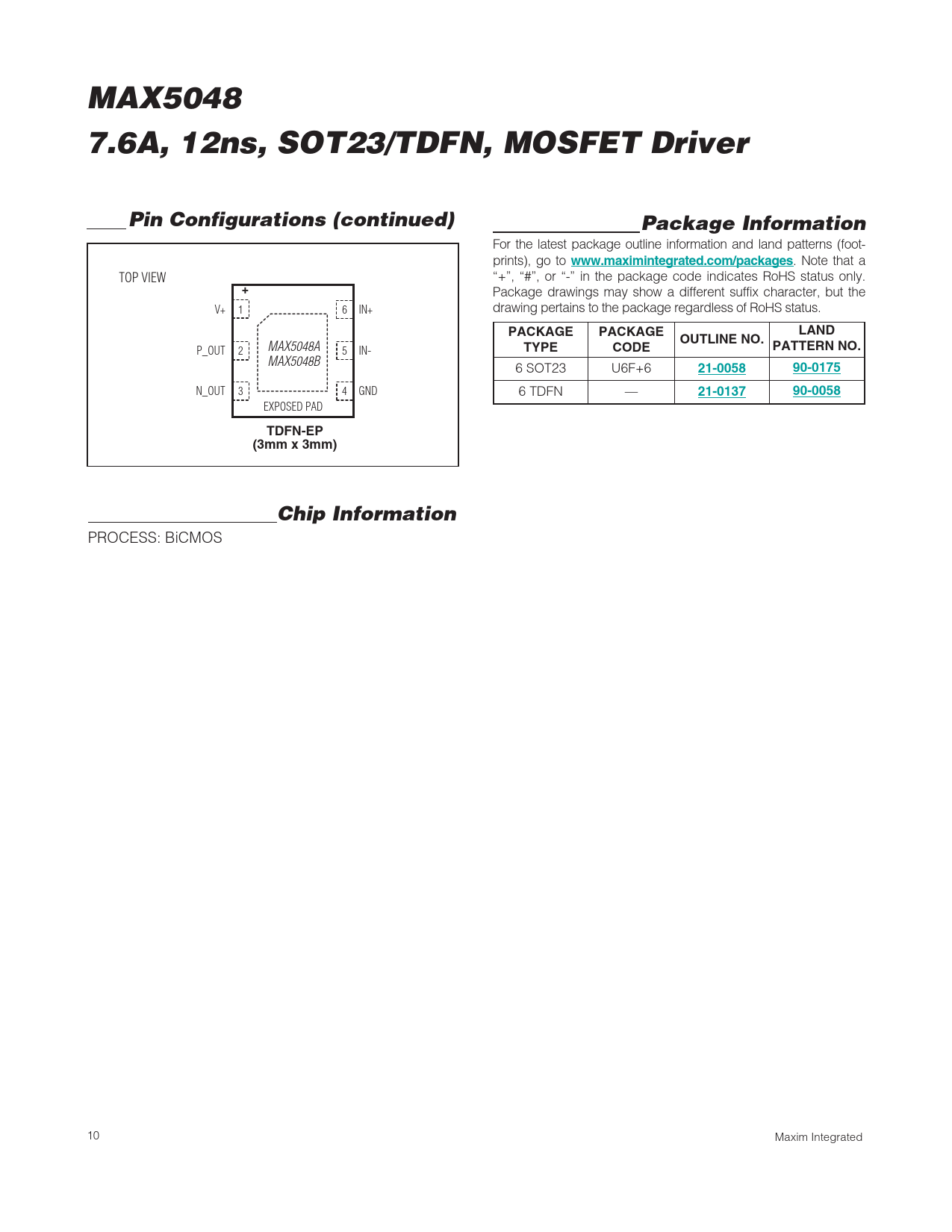 MAX5048. 7.6A, 12ns, SOT23/TDFN, MOSFET Driver. Pin Configurations (continued). Package Information