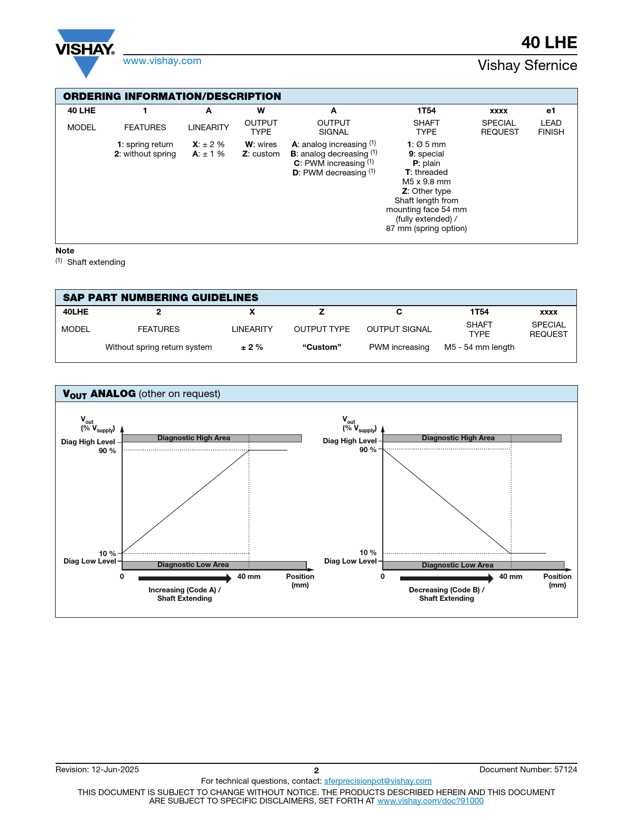 40 LHE ORDERING INFORMATION/DESCRIPTION 1T54 xxxx Note SAP PART NUMBERING GUIDELINES 40LHE ± 2 % “Custom” VOUT ANALOG out (% V