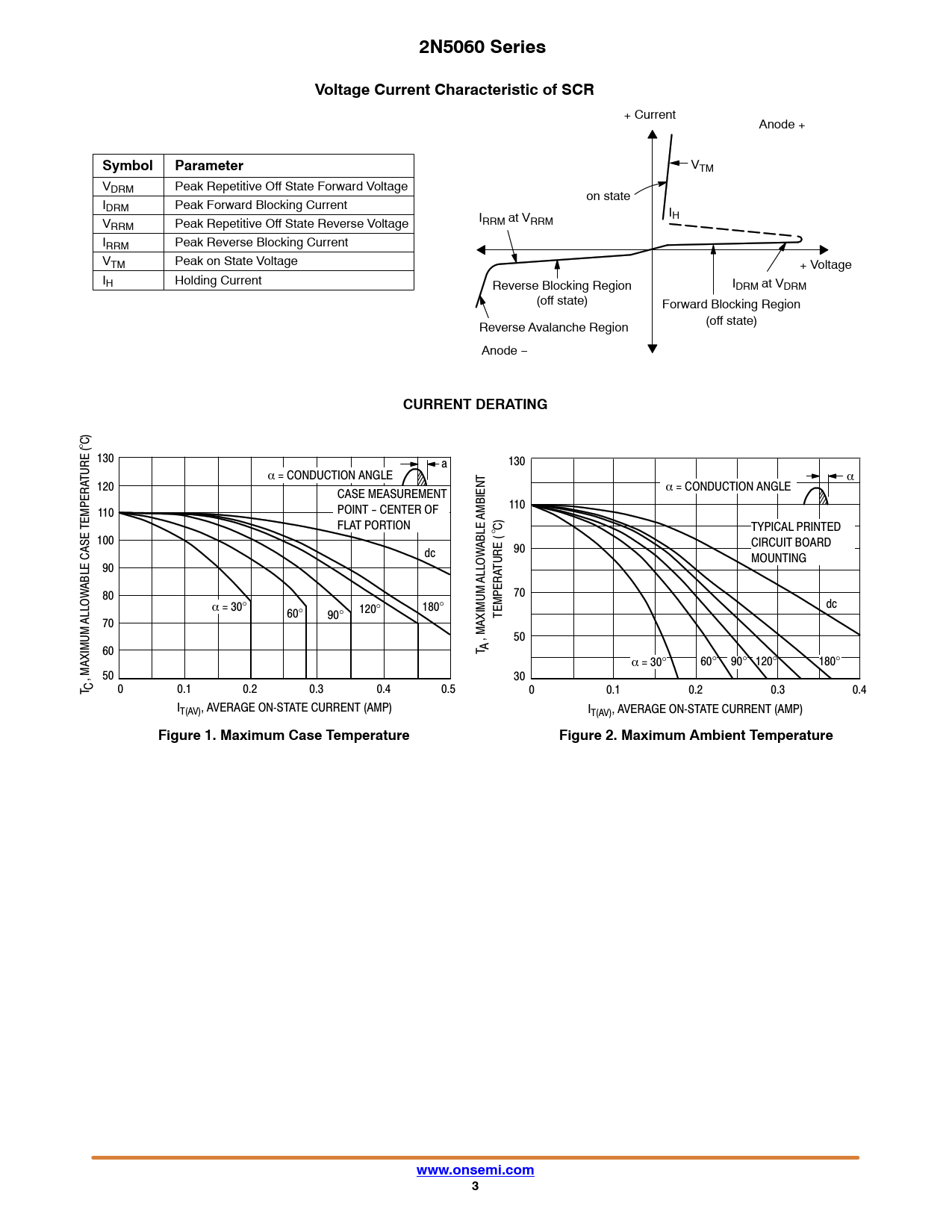 2N5060 Series. Voltage Current Characteristic of SCR. Symbol. Parameter. CURRENT DERATING. Figure 1. Maximum Case Temperature