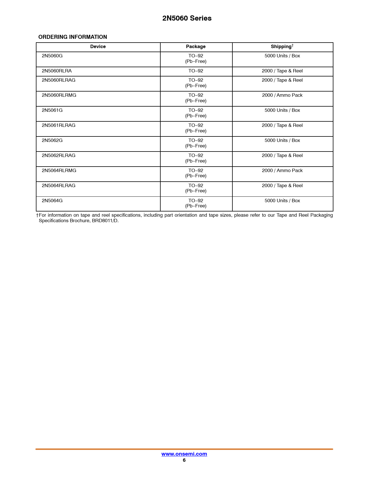 2N5060 Series. ORDERING INFORMATION. Device. Package. Shipping. www.onsemi.com