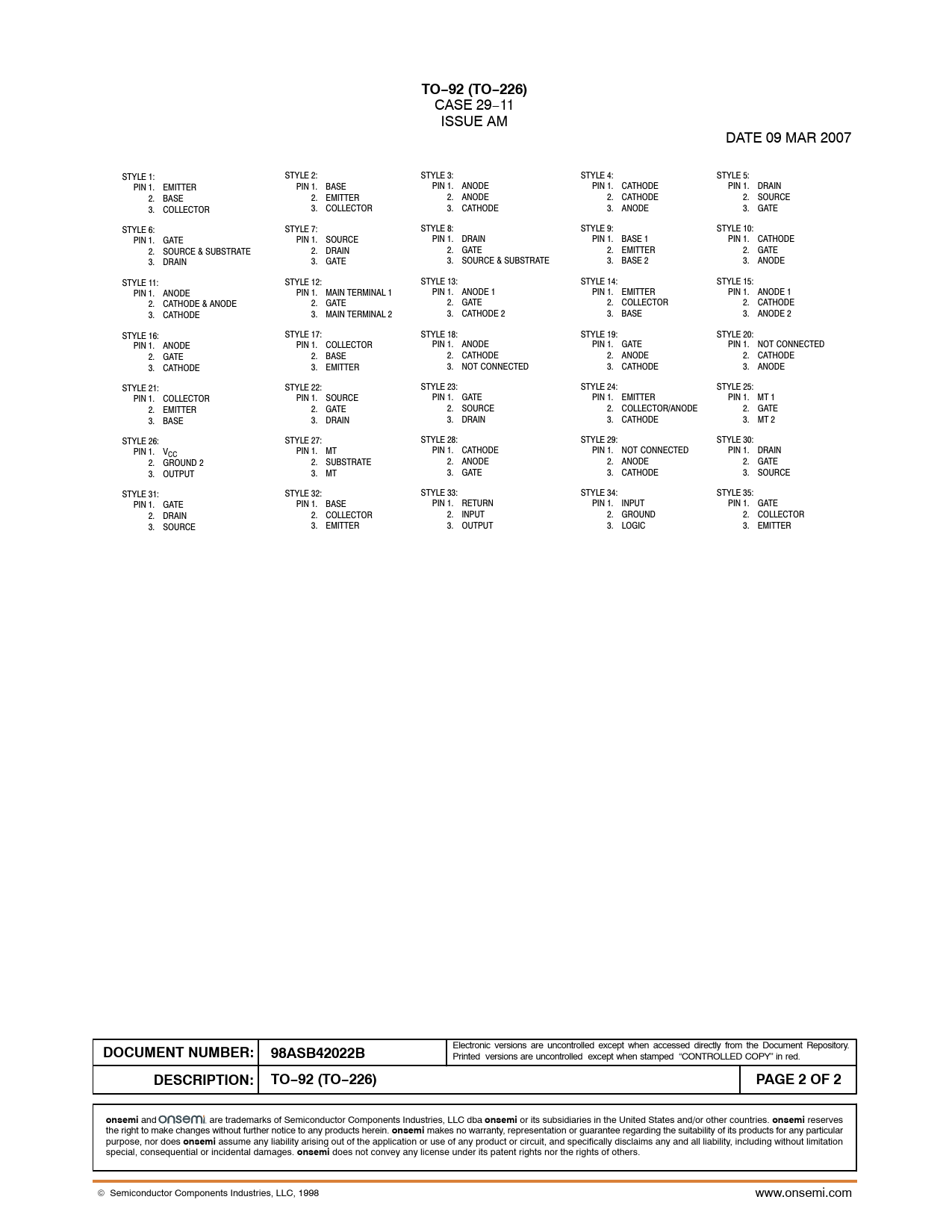 DESCRIPTION: TO−92 (TO−226) PAGE 2 OF 2 onsemi