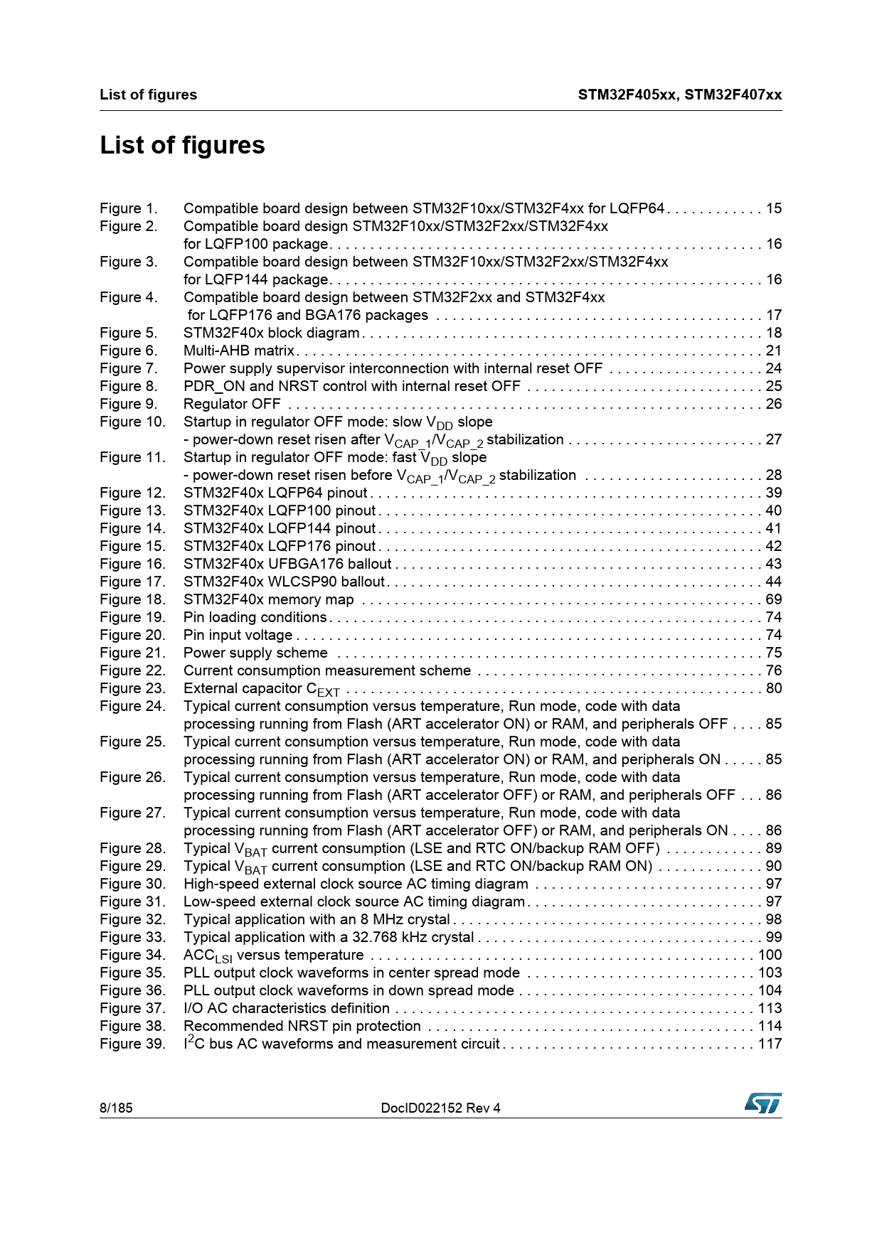 | 页数 / 页 | 185 / 8 — List of figures. STM32F405xx, STM32F407xx |