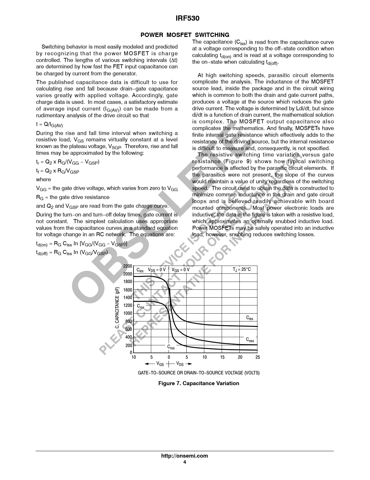 IRF530. POWER MOSFET SWITCHING. Figure 7. Capacitance Variation. http://onsemi.com